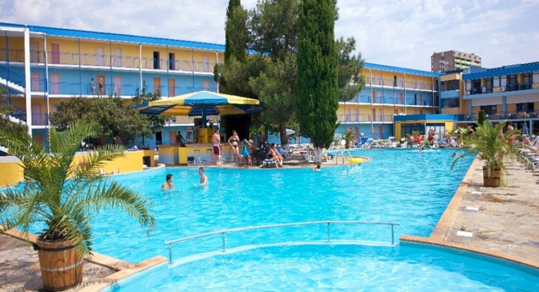 Розташування: у південній частині курорту Сонячний берег за 200 м від пляжу, за 800 м від центру міста (готель Kuban).