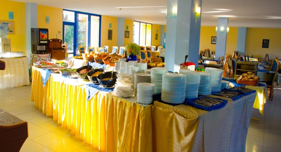 Сразу говорю людям привыкшим к роскаши, которым всё приносят на блюдечке с голубой каёмочкой, и которые любят золотые унгитазы ,то вам не сюда!!! Люди же среднего класса вам должно понравиться. Нам понравилось,отдыхали в Июне . У нас были завтраки и ужины этого вполне нам хватило.Питание было хорошее (конечно экзотических изысков не было) но блюд было и без них много и вкусно приготовленные. Фрукты каждый день по нескольку раз Черешня,Арбузы,Апельсины,Нектарины,Персики. Чеснто по поводу еды мы (ОБЖИРАЛИСЬ) :) Уборка номеров каждый день с 12 00 . Номера хорошие есть маленький холодильник,телевизор,кондиционер,кровати удобные мягкие. Только подушки маловатые.Смена белья каждые 4-е дня.Персонал в большинстве своём вежливый (ну есть отдельные овцы которые портят всё стадо ну это впрочем как и везде).Есть персонал который на русском не бум бум, но этот минус скрашивает то что там очень много русскоязычных туристов. По поводу туристов то там отдыхает вся Европа.За селение происходит каждый день строго с 14:00. Раньше вас не заселят (потому как номера убирают и подготавливают). Есть бесплатный WiFi но с ним проблемы бывают.Закрытая территория отеля БОЛЬШОЙ ПЛЮС поверьте. Бассейн замечательный. Бесплатные шезлонги с матрацами у Бассейна. КОРОЧЕ МЫ ДОВОЛЬНЫ. И советуем (ПРОСТЫМ) людям съездить и ОТДОХНУТЬ-(ОТОРВАТЬСЯ).P.S. Ездили на экскурсию в Стамбул очень понравилось (НО ТОГДА ТАМ БЫЛО СПОКОЙНО) так что в целях вашей безопасности есть там другие очень хорошие туры, советуем вам побывать в Болгарской деревне(БОЛГАРСКАЯ ВЕЧЕРИНКА) ,а также съездите в Румынию (ТРАНСИЛЬВАНИЯ). И ещё забыли написать город "Солнечный Берег " очень красивый ,а город "Золотые Пески" очень ДОРОГОЙ. НАРОД СЪЕЗДИТЕ И НЕ ПОЖАЛЕЕТЕ БОЛГАРИЯ ОЧЕНЬ КРАСИВА И ГОСТЕПРИИМНА:) !!!