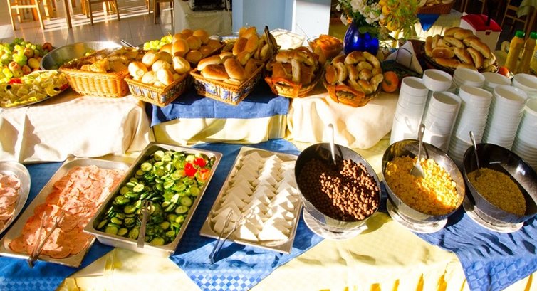 Ну что по поводу кухни, у каждого свои предпочтения и вкусы. Если вы по утрам привыкли завтракать лобстерами и фазанами, запивая шампанским Veuve Clicquot Rose Reserve тогда Вам не сюда...А если ВЫ поклонник гречневой каши, куриных яиц, сосисок, колбас, различных сыров, выпечки, вкусного йогурта с мюслями и вареньем, молока, свежих фруктов, тогда милости просим!!!