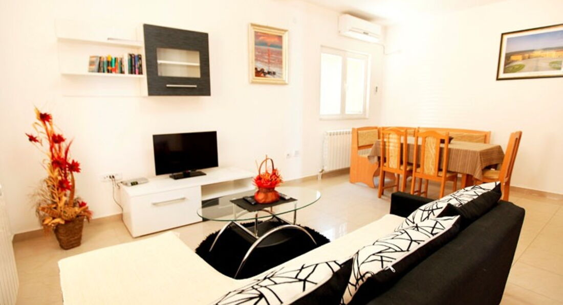 B APP 04: вітальня-їдальня з повністю обладнаною кухнею, 2 окремі спальні з французьким та окремими ліжками, кондиціонер, кабельне телебачення, холодильник, інтернет, ванна кімната з душовою кабіною, балкон з видом на море.
