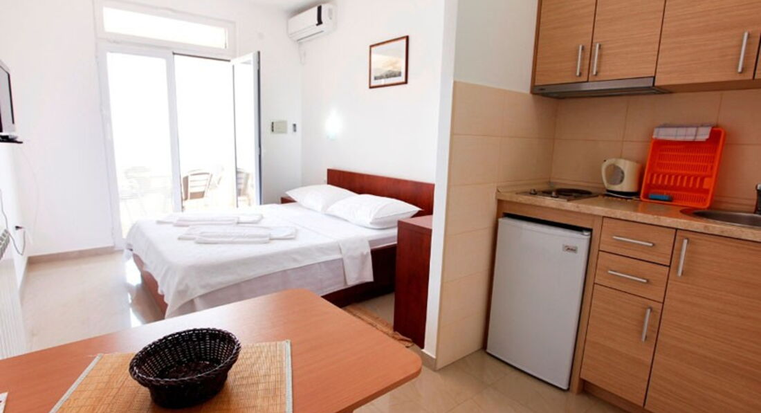 B STUD 03: французьке ліжко, додаткове ліжко, кондиціонер, кабельне телебачення, ванна кімната, холодильник, міні-кухня, wi fi інтернет, балкон з видом на море або на гори.