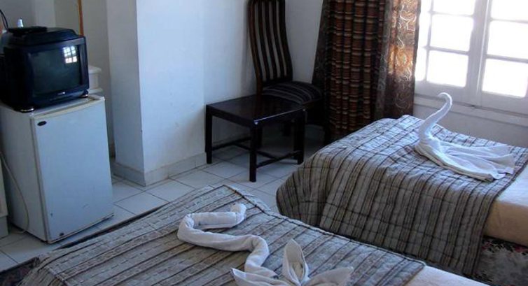 Скажу про номер: балкона не было, засаленная штора отделяла меня от жилого квартала. Номер маленький с непонятным набором мебели, расставленной в хаотическом порядке. Две небольшие кровати, поеденый молью лик Нифертити над ними. Коврики на полу очень старые и грязные. Поэтому по номеру ходила в обуви. Кондиционер работал исправно (но в середине ноября в нем не было большой необходимости), исправно работали и унитаз, и раковина. Была горячая вода в душе, но сложно было наладить напор нужной воды. Очень сильно морозил холодильник. Также есть маленький телевизор, но если вы не местный житель, или не говорите по-арабски, то вам он вряд ли будет полезен, так как вещает только местные телеканалы. Спутника нет - это отель 2*.