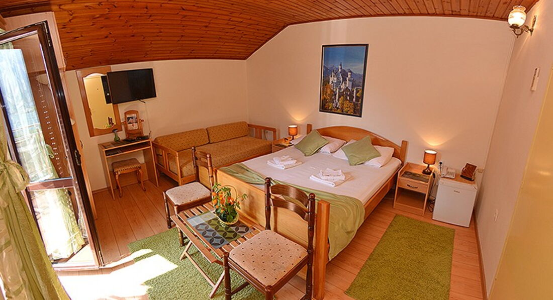 У готелі 10 дво- та тримісних номерів, з яких 6 номерів з балконом та видом на Боко-Которську затоку. Округи готелю покриті лісами і горами, що прорізаються долинами.