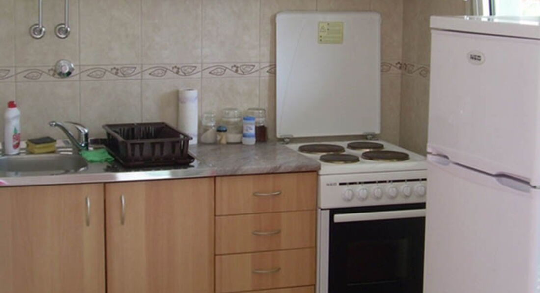 У студіо: Площа 23м2, французьке ліжко, кондиціонер, кабельне телебачення, кухонний блок, загальна тераса, ванна кімната.