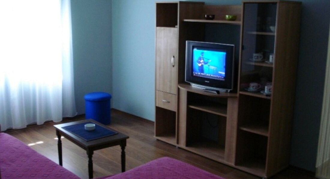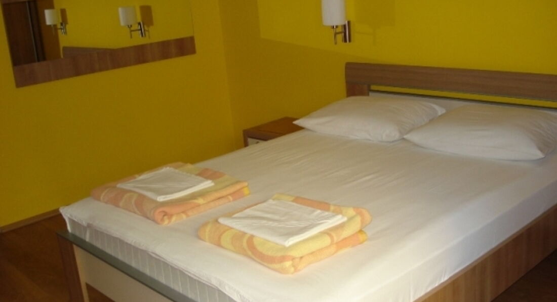 В апартаменті 05: Знаходиться на третьому поверсі, в апартаменті дві окремі спальні, в одному французьке ліжко, в другому французьке та додаткове односпальне ліжко, на терасі кухня, обідній стіл, чайник, холодильник, необхідний посуд, кондиціонер, кабельне телебачення, Інтернет (безкоштовно) ), у ванній туалет, душова кабіна, фен, праска, зі спальні вихід на велику терасу зі столом та стільцями.