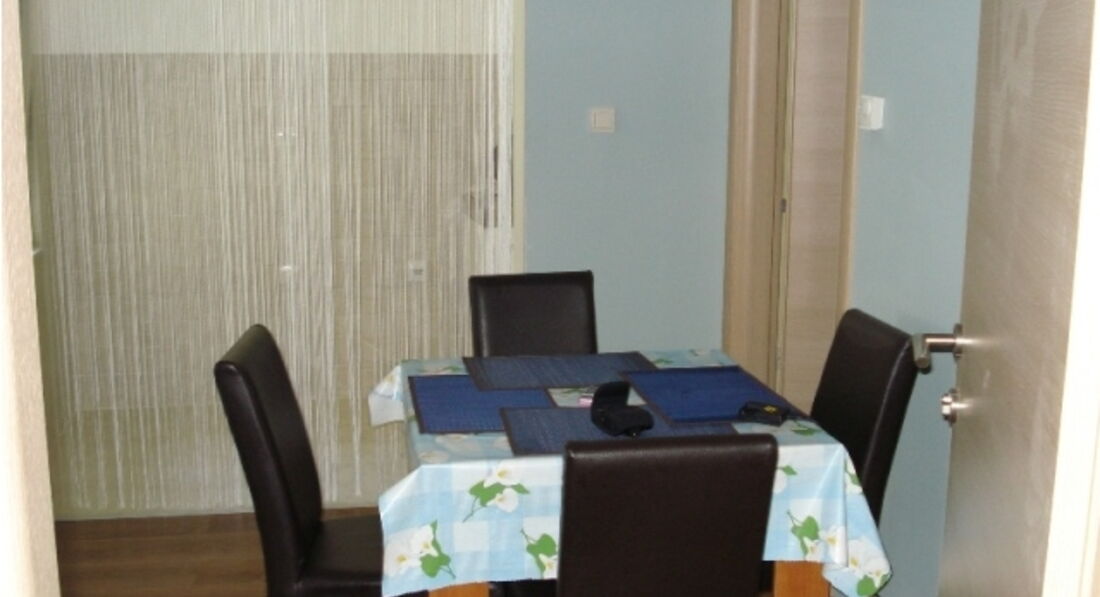 В апартаменті 04: Двокімнатний номер на першому поверсі, в спальні французьке ліжко, в залі диван, кухня, чайник, холодильник, посудомийна машина, необхідний посуд, кондиціонер, кабельне телебачення, Інтернет (безкоштовно), у ванній туалет, душова кабіна, фен, праска перед апартаментом тераса зі столом і стільцями.