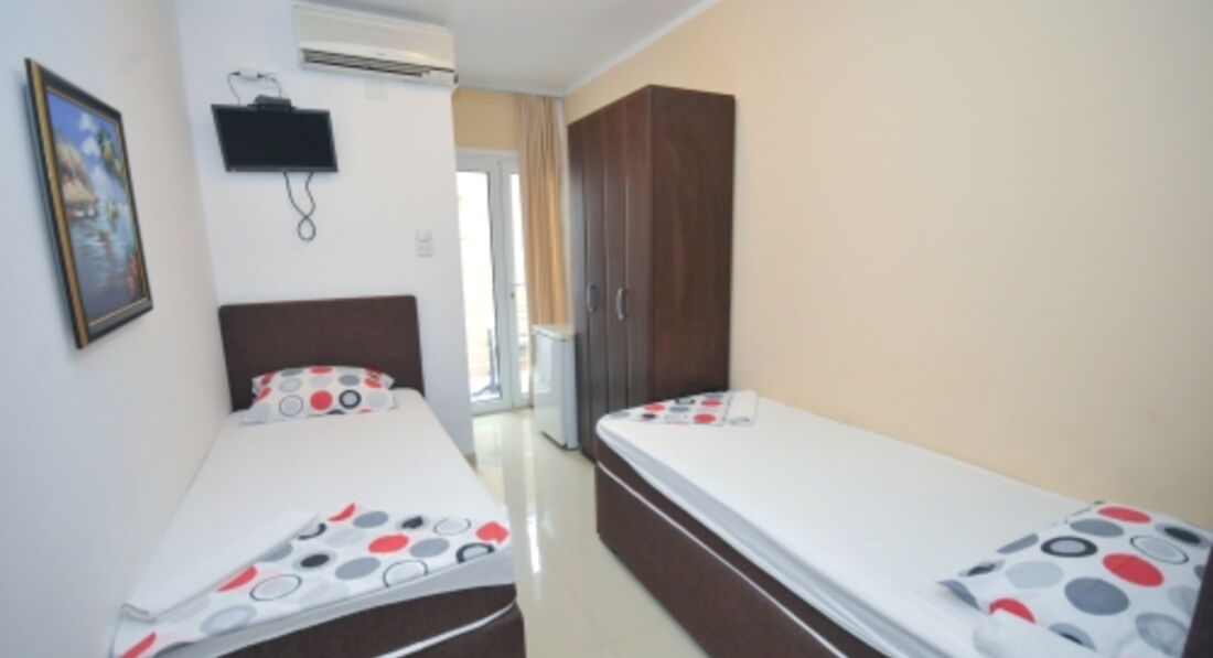 No 3 TWIN: два окремі ліжка, загальна тераса перед номером, немає прямого виходу на терасу з номера.
