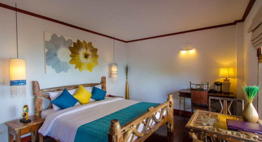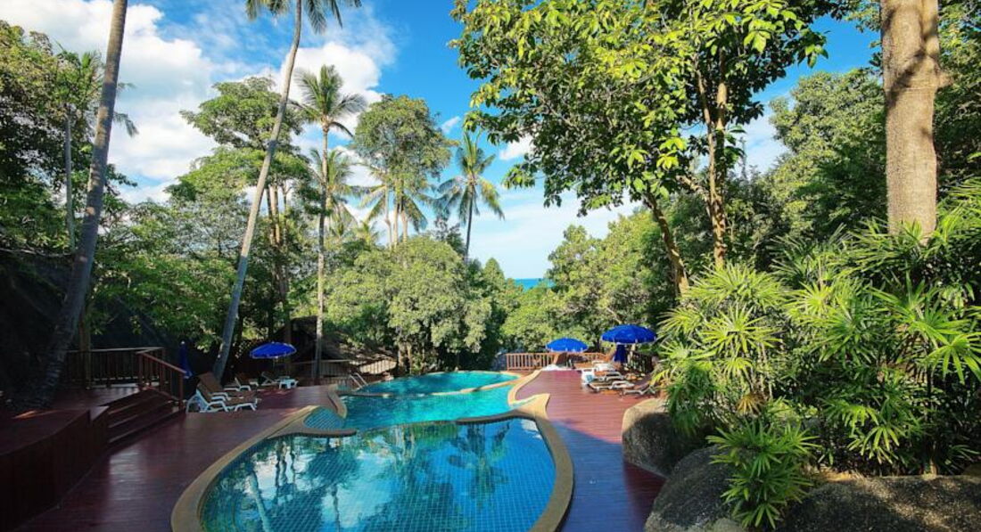 Да, отель на горе. В настоящем (не высаженном) лесу. По ночам кричат обезьяны, к нам на балкон приходил геккон, но остаться отказался(((.