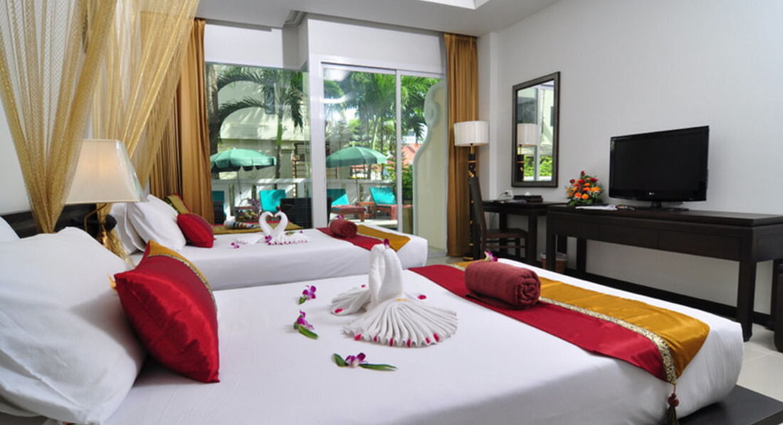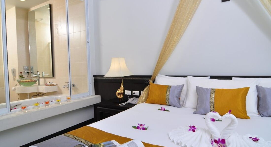 Отдыхали в этом отеле с 9 по 25 сентября. Приехали в отель в 11 утра, нас сразу заселили) дали номер как и просили заранее на 4 этаже в 1 корпусе.номер понравился безумно, с террасы было видно море) В номере есть все необходимое, порадовало наличие прекрасной душевой кабины помимо ванной. В номере была огромная кровать, телевизор, холодильник, шкаф с двумя халатами и тапочками, зонт. В ванной - жидкое мыло, гель, шампунь, 2 зубные пасты, 2 зубные щетки и даже ватные палочки). Мы быстро переоделись и отправились на пляж! Карон - он безумно прекрасен! Огромный пляж со скрипучим песочком! На море были сильные волны, мы в основном заходили только попрыгать на волнах) . Пляж настолько понравился, что основное время мы проводили на нем). В отеле есть хороший бассейн, всегда можно было найти место на лежаках, прекрасное место, где мы спасались от сильной жары. В бассейне есть бар, где можно заказать еду и напитки, но со своим приходить запрещалось! Завтраки в отеле с 6.30 утра, мы просыпались рано, приходили и выбирали столик с прекрасным видом на море) горячие блюда были каждый день новые, делали омлет, тосты, на выбор фрукты и овощи. Очень понравился кофе).уборка была каждый день, постоянно выкладывали из полотенец лебедей,слоников) один раз решили поспать подольше, так нам даже позвонили с ресепшена с вопросом убирать номер или нет). Расположение отеля замечательное, центр карона, рядом рынки, кафешки, супермаркеты.экскурсии мы не брали, ездили самостоятельно, поэтому решили самостоятельно до конца путешествовать) заказали тук тук , ездили на карон view point, nai harn beach, мыс протемп, big budda. Пол дня поездки обошлись всего в 1500 бат. Забронировали отель на пхи пхи, начали искать выгодный вариант , что бы туда добраться. Русские агенства на улице предложили вариант по 1000 бат с человека за трансфер из отеля до пирса rassada, билет на паром туда обратно, а обратно с пирса до отеля собираетесь сами((( такси оттуда до карона стоит 480 -600 бат. Мы нашли вариант выгоднее, направо от отеля перед рынком стоит желтая будка, в ней сидит таец и продает туры. 1600 бат за двоих стоит трансфер отель пирс, билеты на паром туда обратно, и обратный трансфер до отеля. Обратно на выходе встречала девушка, которая распределяет всех по машинам.остались очень довольны! Отель очень понравился, дружелюбный персонал, который откликался на все наши просьбы)когда выезжали, нам предложили позавтракать, хоть питание уже не было включено. Провожали все сотрудники, говорили, что ждут нас в следующем году, тронуло до глубины души, я со слезами на глазах ехала в аэропорт. Впервые вижу такой дружелюбный персонал! Отель замечательный, море прекрасно, в Таиланде не впервые, но он в очередной раз поразил своей красотой и неповторимой атмосферой)