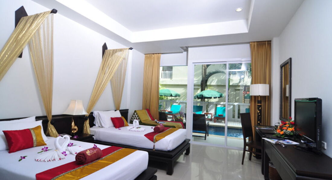 Отель нормальный. Заселили сразу по приезду, около 12 дня. Т к у нас было свадебное путешествие в качестве подарка нас заселили в номер с выходом в бассейн на два дня, тарелка с фруктами и лепестки роз на кровати. Приятно! Номер с выходом в бассейн хороший, все работает, кондиционер хороший, просторный номер. После нас пересили в старый корпус, который и был оплачен. (Хотели продлить первый номер за деньги, но видимо его кто-то забронировал и Тайки не в какую не соглашались). В старом корпусе комнатки маленькие, вещи складывать особо не куда, убирались не особо тщательно, зарядные устройства с розеток выпадали Но отдых это не испортило. Главное что все в рабочем состоянии.