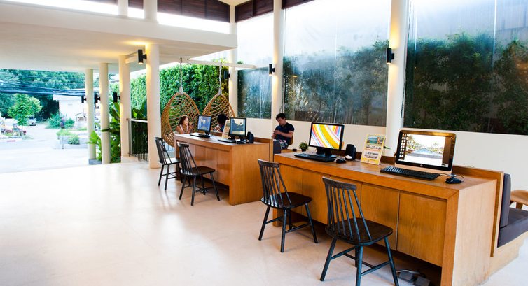 Территория. Повторюсь, очень маленькая и это прекрасно! По сути территория отеля - это бассейн и номера вокруг. На территории чисто, открыто, зелень есть, но не много, так там и негде насаживать. Нам понравилось. Пугали только кокосы на пальмах. Есть компьютеры с бесплатным выходом в интернет. На территории вай фай ловит везде. Скорости хватало для того, чтобы скачать кино.