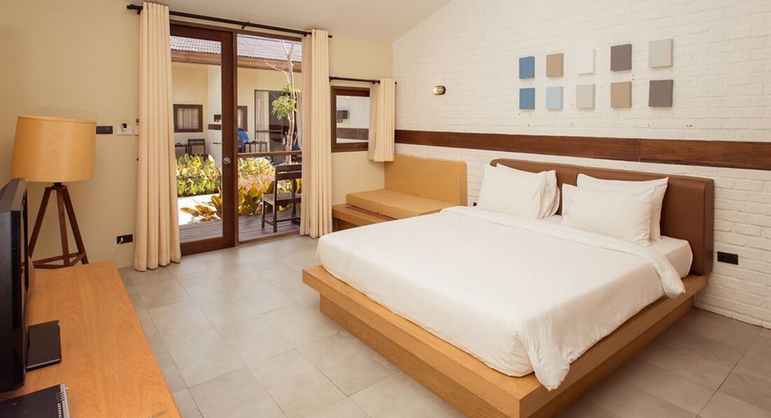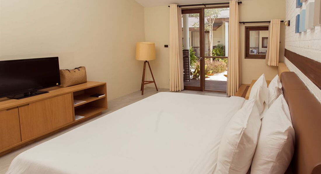 • 3 beachfront bungalow (69 кв.м, одне двоспальне ліжко, макс. 2+1 чол, на краю пляжу, вид на пляж/море).