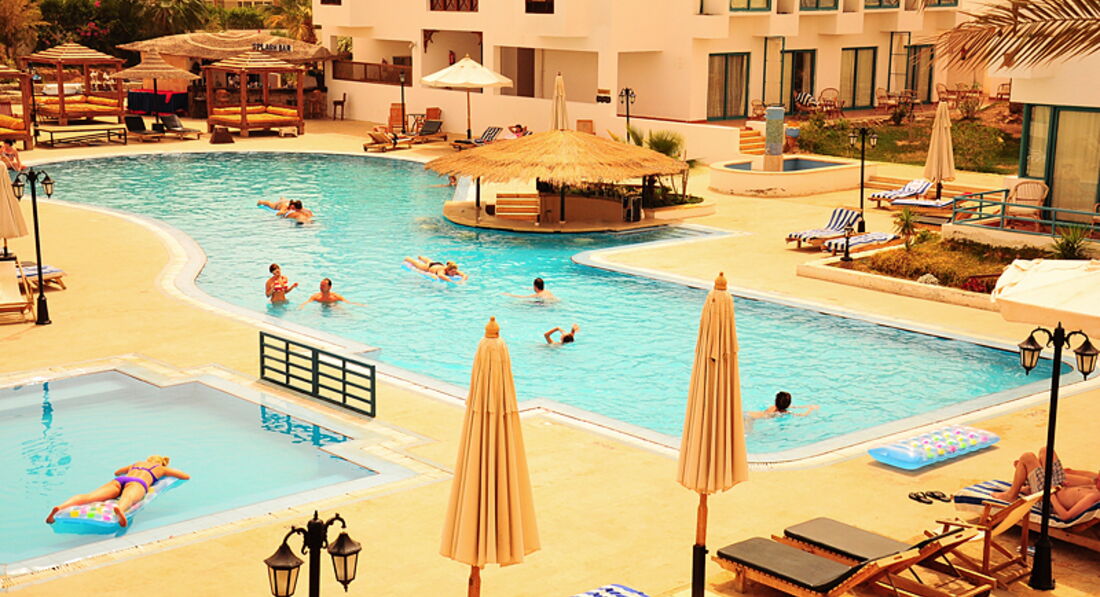 Приветик! Были с мужем в этом отеле. В Шарме были первый раз. Есть конечно свои плюсы и минусы. Начну с минусов - убираются конечно тяп ляп, могут застелить туже постели что валялась на полу, но мы сразу пожаловались на ресепшин и все разрулили, нехватка шезлонгов, но мне кажется это во всех отелях, нет конечно дискотеки, но музыка всегда была, крутили кончено один и тот же диск, но можно включить свой бес проблем, бассейн не всегда чистили. а теперь плюсы - еда конечно специфическая, но кушать можно, фрукты были постоянно особенно апельсины, очень вкусные выпечка. сладости ммммммм пальчики оближишь. разрешали в бассейне до 12 ночи беситься, это не везде можно))) по вечерам были разные развлечения. Да море далековато то, но есть для этого автобус, который тебя во время отвозит и привозит, так же и в новый город. Даже платить не надо за такси. Так что для отдыха, чтоб расслабиться, пить алкоголь, короче просто отдыхать желаю поехать в этот отель.