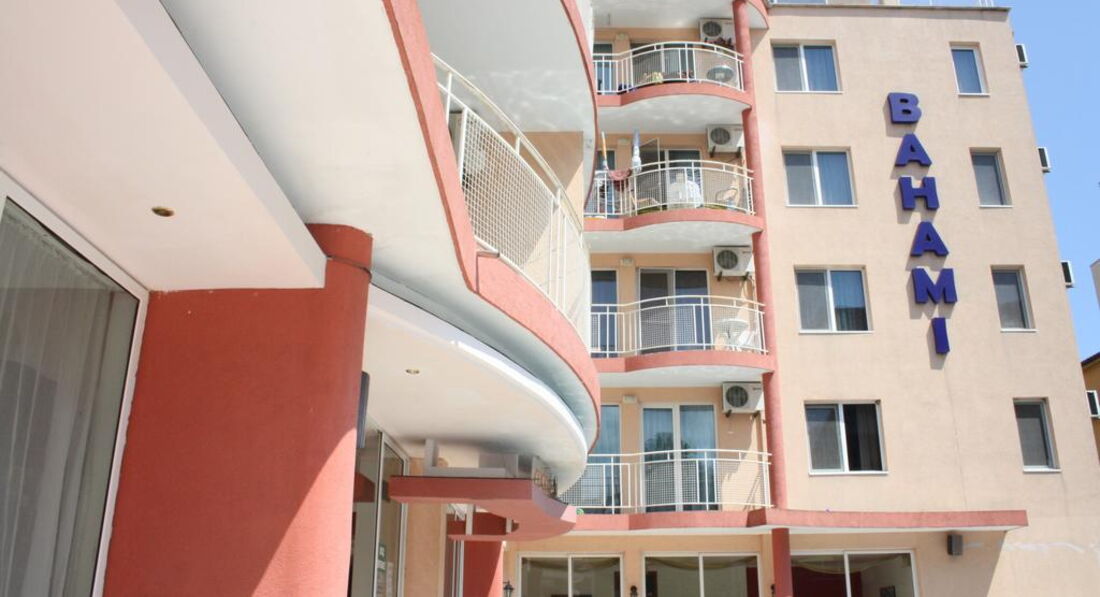 Готель Bahami 3* розташований у центральній частині курорту Сонячний берег на тихій спокійній вулиці. Неподалік від готелю знаходиться безліч розважальних об'єктів, різні ресторани, нічні клуби, кафе. Території біля готелю практично немає, компактний внутрішній двір та басейн. Підійде до бюджетного відпочинку.