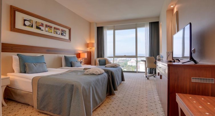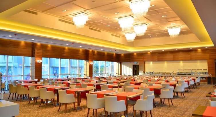 Територія та послуги: • 3 конференц-зали 47, 86 та 89 кв. м • Бізнес центр • Пральня • Хімчистка • Паркування • Кімната для зберігання багажу • Ресторан A la carte • Бар Розваги та спорт: • Тренажерний зал • SPA-салон • Масаж • Сауна • Турецька лазня Живлення: • Система живлення: HB (сніданки + вечері) • Розклад роботи основного ресторану: 07:00 – 23:00 До оплати приймаються кредитні картки: MasterCard, Visa, Amex
