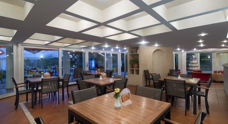 Ресторани та бари: головний ресторан – міжнародна кухня, розрахований на 1200 осіб, критий, з терасою, є дитяче меню; бар на пляжі (10:00-19:00), диско-бар (23:00-03:00, безкоштовно тільки безалкогольні напої) – платно; бар біля басейну (09:00-01:00), лобі-бар "Coffe House" (09:00-23:30), Beach Bistro (10:00-03:00) – безкоштовно. 1 ресторан А"la Сarte: рибний - платно, за попередньою резервацією.