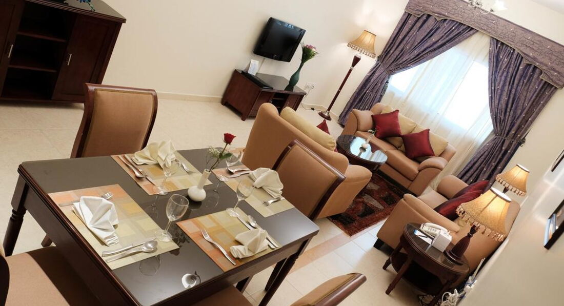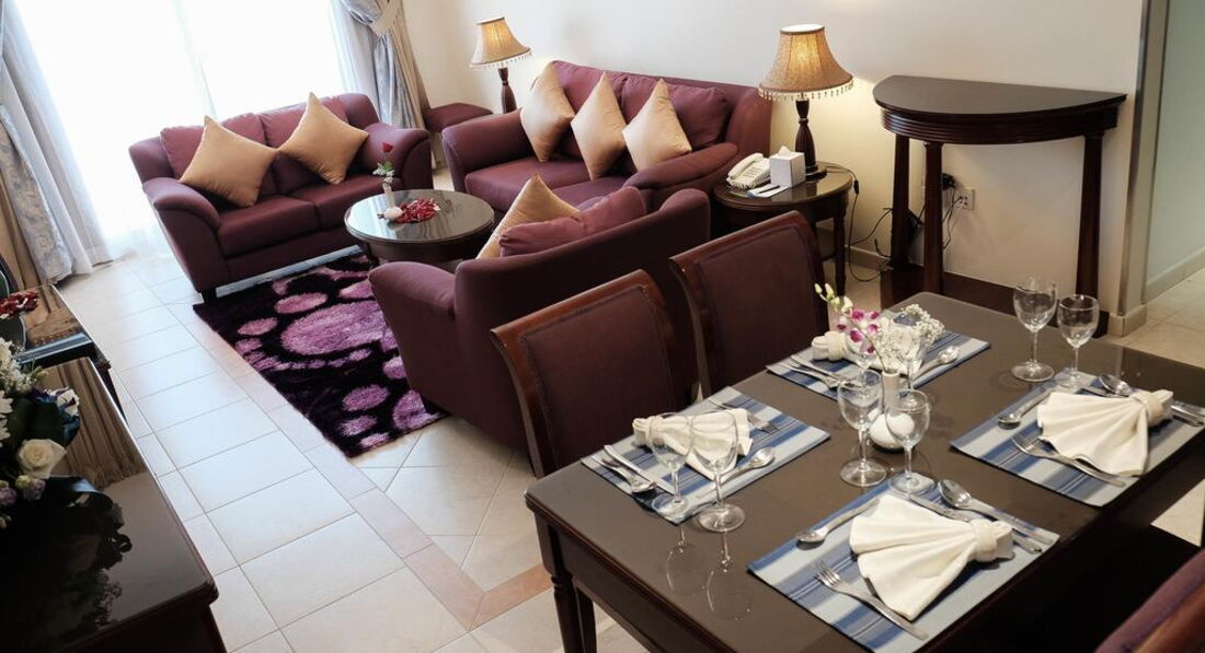 Типи номерів: • Deluxe One Bedroom Apartment, 79 кв. м • Executive One Bedroom Apartment, 92 кв. м • Executive Two Bedroom Apartment, 111 кв. мУ номері: • спальня • ліжко king-size • обладнана кухня • вітальня • балкон • кондиціонер • Wi-Fi: безкоштовно • ванна/душ • санвузол • набір для кави та чаю • кава-машина • TV: супутникове • телефон • сейф у номері • фен • праска, прасувальна дошка • room service