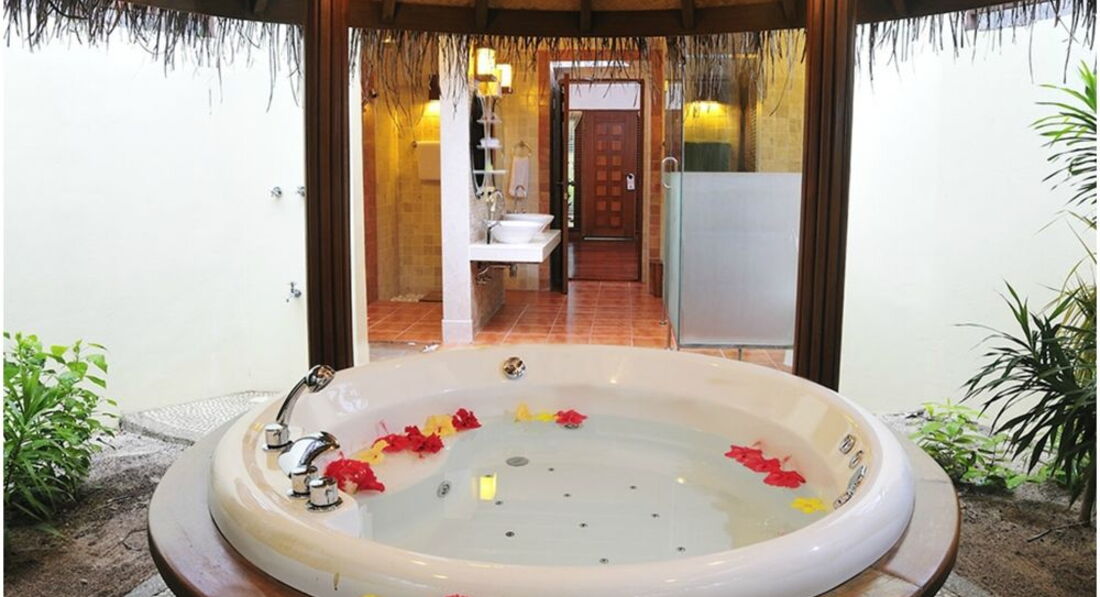 Отдыхали с семьей и двумя детьми 5 лет и 2 года в январе 2015 года! Отличный отель для 4*. В принципе всё что нам нужно было-мы получили. Остров небольшой, обошли его минут за 20 неспеша. Жили в джакузи бич бунгало прям рядом с баром и водно-развлекательным комплексом. Пляж супер! Белый песочек. Водичка прозрачная! Маленькие акулята нисколько не пугали. Что интересно, на нашей стороне острова всегда был штиль, что нам и нравилось-море спокойное, детям самое то! А на другой стороне острова всегда ветер и волны.