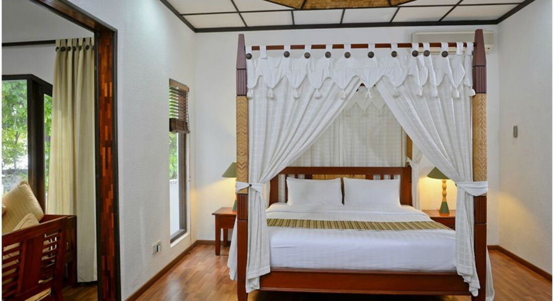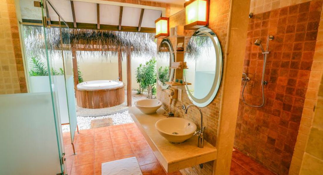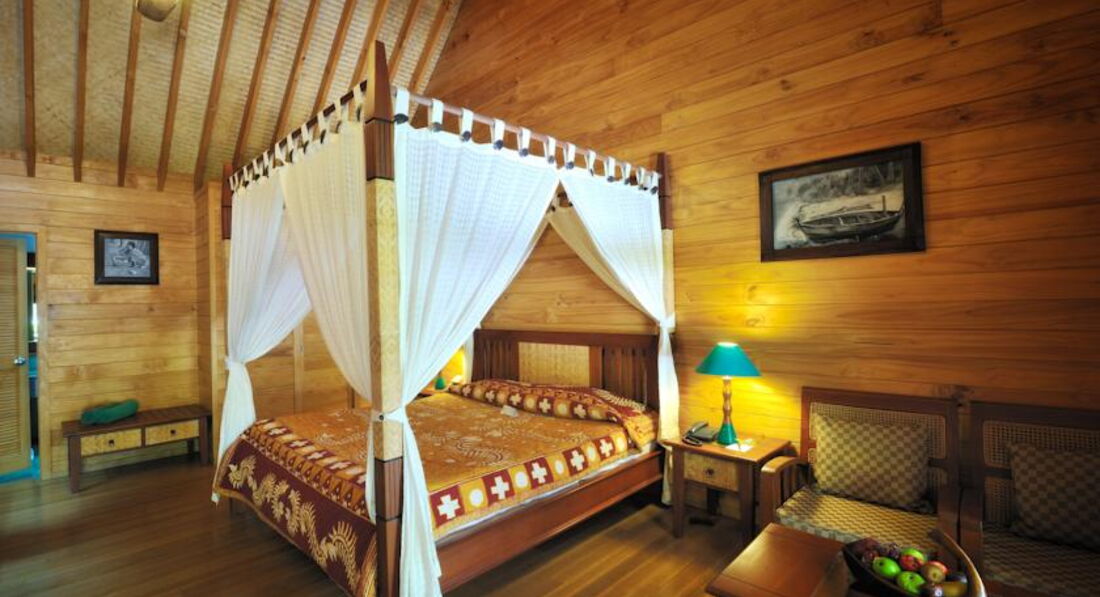 2 Water Villa (116 кв.м., водні бунгало, що стоїть на палях у водах лагуни, що складаються зі спальні та вітальні, джакузі. Індивідуальний спуск у воду.).