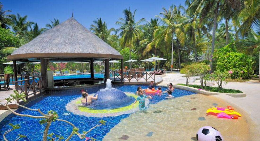 В общем нам все понравилось. У нас и у друзей это не первая поездка на Мальдивы и вообще есть с чем сравнивать. Так как мы с маленькими детьми, то вообще претензий нет. Отель недалеко от Мале, песочек хороший, лагуна тоже неглубокая, в прилив где-то 1м10см. Есть детский клуб, но мы на него только посмотрели и поздно. В бассейне вода ооочень теплая по сравнению с водой в лагуне. В лагуне вода не стоит, течение неслабое, вода не грязная, при заходе кажется прохладной даже, потом привыкаешь, а из-за ветра бывало холодновато даже. Остров утопает в зелени и цветах, очень красиво.