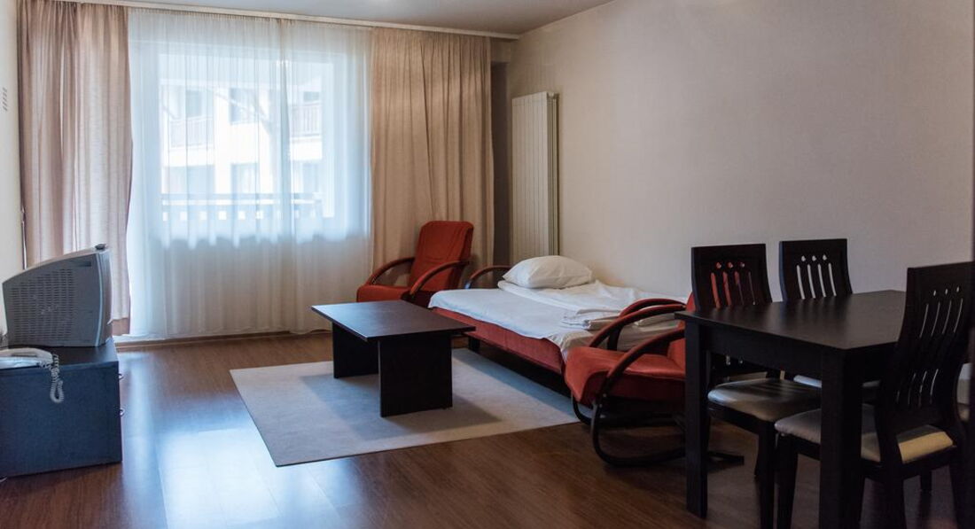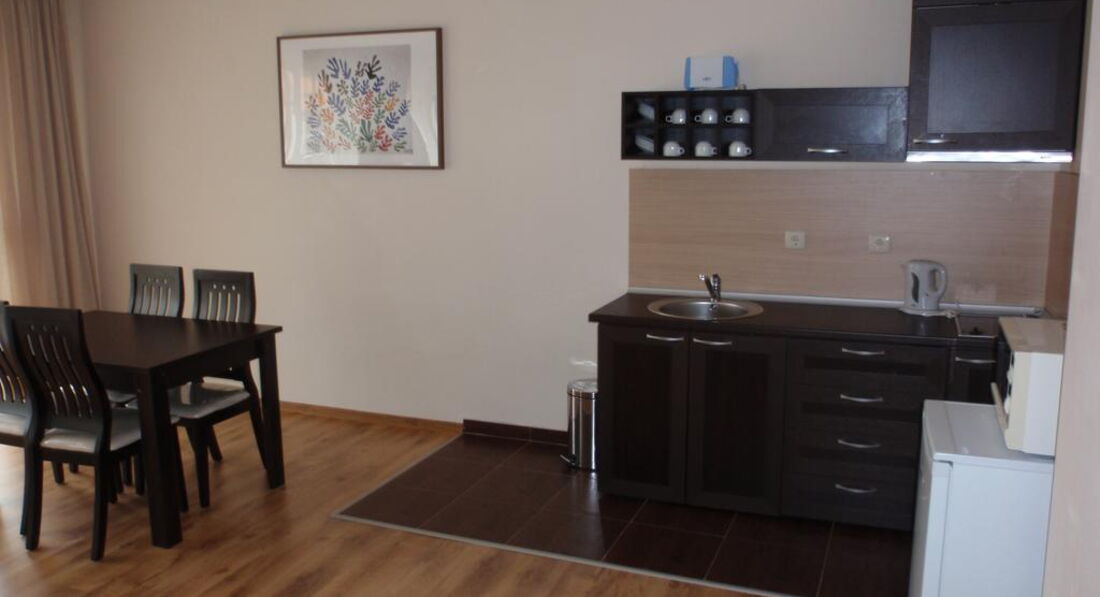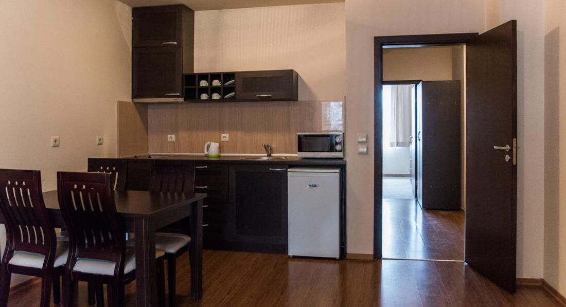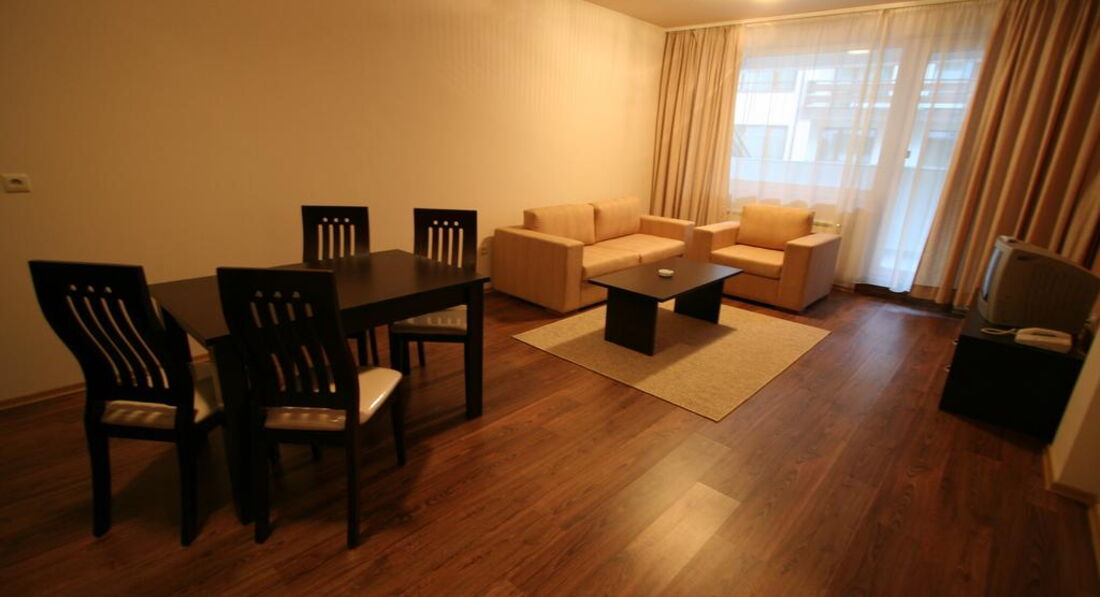 Стильні та просторі номери, обладнані міні-кухнею. Готель розташований поряд з початковою станцією витягу, недалеко від магазинів та ресторанів. Загальна площа 14000 м2. Готель збудований у 2008 році. Косметичний ремонт робиться щороку. Готель складається з апартаментів, розташованих у 12-ти п'ятиповерхових будинках, кожна будівля з власним входом та ліфтом.