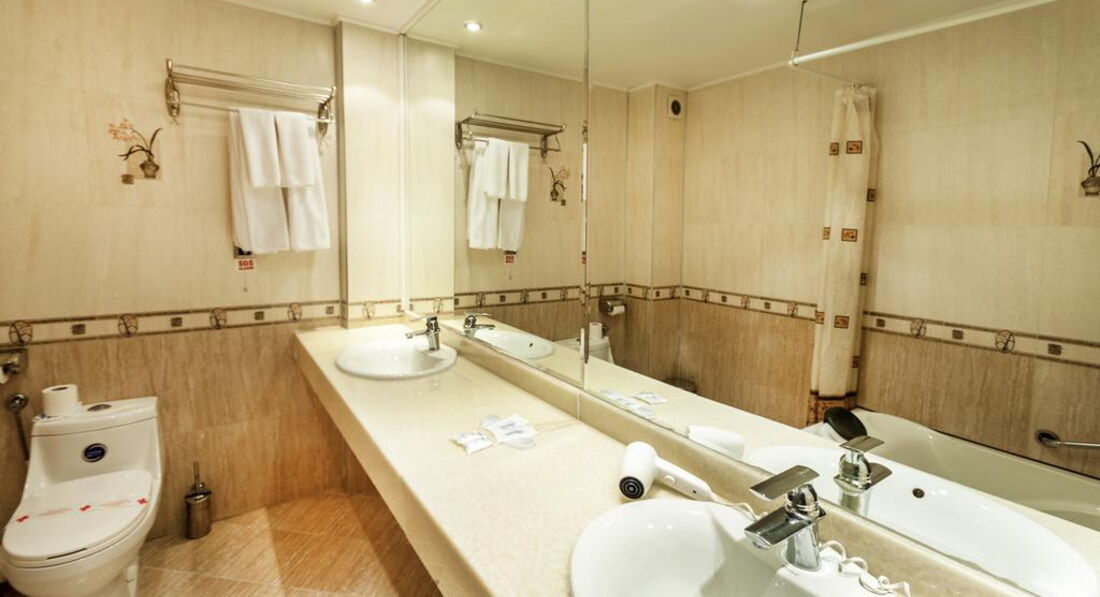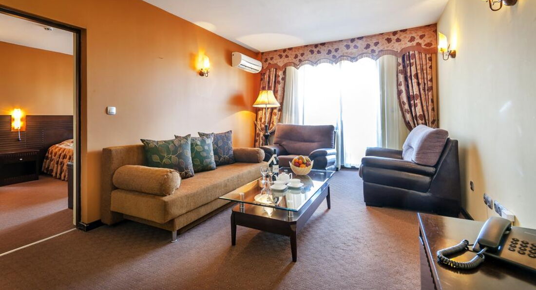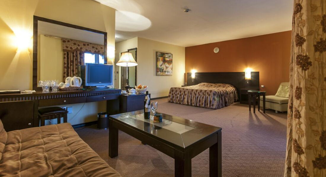 • балкон • кондиціонер • ванна • санвузол • косметичні приналежності • капці • халат • рушники • мінібар (платно) • TV: супутникове • телефон • фен • прибирання номера: щоденно • room service: платно • зміна білизни: 2 рази на тиждень • зміна рушників Територія та послуги: • закритий басейн, що підігрівається • wi-fi (безкоштовно) • оренда автомобіля • кімната для зберігання лиж (безкоштовно) • ліфт • оплата за кредитними картками • перукарня • парковка, що не охороняється (безкоштовно) • пральня (платно) • сейф на reception (платно) • транспорт до витягу (безкоштовно) • послуги з прасування одягу • екскурсійні програми • 2 конференц-зали (місткістю до 160 місць) Розваги та спорт: • прокат велосипедів • прокат лиж • тренажерний зал (безкоштовно) • spa-салон (платно) • критий басейн (безкоштовно) • масаж (платно) • парна (безкоштовно) • процедури з догляду за особою • процедури догляду за тілом • салон краси • сауна (безкоштовно) • тренажерний зал (безкоштовно) Для дітей: • дитяче ліжко • дитячі стільці у ресторані • ігрова кімната Живлення: • ресторан • лобі-бар • система живлення: HB