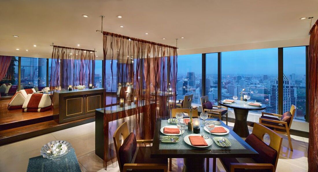 • ресторани: 6 (міжнародний Vertigo Grill & Moon Bar – просто неба на 61 поверсі, китайський Bai Yun, японський Taihei, тайський Saffron, Romsai – міжнародний шведський стіл, Apsara Dining cruise – на березі річки Чао Прайя)