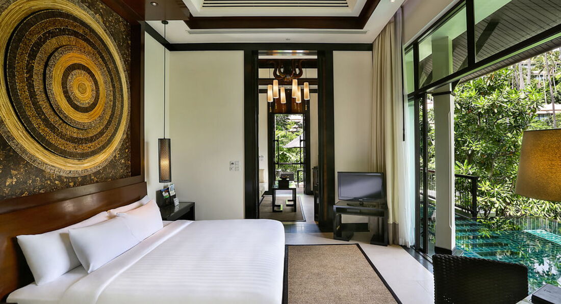 10 Royal Banyan Pool Villa (велика вітальня з панорамним видом на море, спальня з дверима, приватний садок, басейн 5х7 м, альтанка біля басейну, макс. 2+1 чол., заг. пл. ділянки вілли 155 м2);
