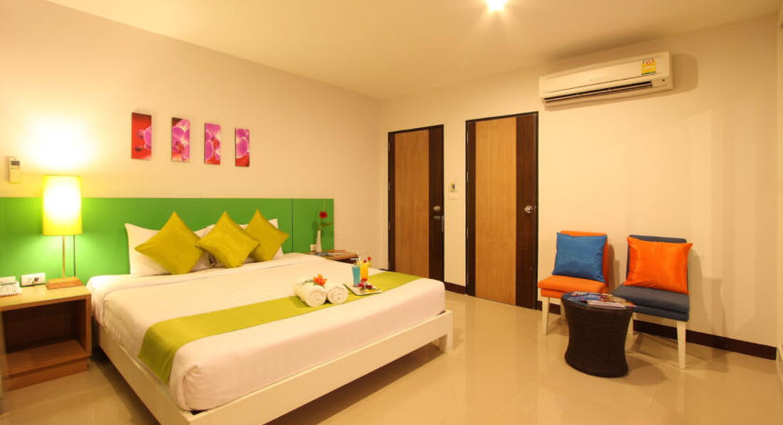 Затишні номери оформлені в сучасному стилі з яскравими акцентами. Готель знаходиться поруч із центром Патонга, в тихому провулку, до нічних розваг 5-7 хвилин. Рекомендуємо туристам, які надають перевагу проживання в центрі міста, але в спокійній затишній атмосфері.