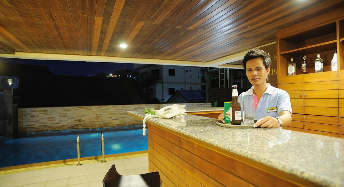 Територія та послуги: • басейн (4.15 x 16.50 м; 07:00-19:00) • ресторан • 2 бари • ліфт • сейф на ресепшен (безкоштовно) • Wi-Fi у лобі (безкоштовно) • інтернет-куточок (безкоштовно) • пральня • шатл-бас до центру Патонга (торговий центр Джанглцейлон), з 10:30 до 16:50, безкоштовно Розваги та спорт: • спа процедури • масаж Для дітей: • басейн (2.7 x 3м; 07:00-19:00) • дитяче ліжечко (за запитом, безкоштовно) • дитячі стільці в ресторані (за запитом, безкоштовно) • няня (платно) Живлення: • BB (сніданок шведський стіл) Пляж: Громадський піщаний пляж. Пляжні рушники безкоштовно (на ресепшен).