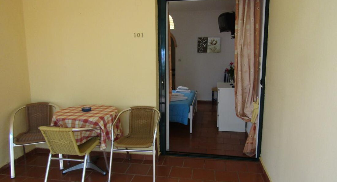 Всього 23 номери: Studios (~25-30 кв.м), Double Bungalows (~35-40 кв.м), Apartments 2-Brooms (~55-60 кв.м), Maisonette (~75 кв.м). Типи номерів: Studios (~25-30 кв.м) Double Bungalow 2 типу: салон з кухонним куточком та диван-ліжком та окрема спальня з дверима (2 односпальні ліжка, об'єднані) Або салон з кухонним куточком та диван-ліжком та за розсувними дверима спальня (2 односпальні ліжка, об'єднані) Apartment 2-Brooms Салон, кухня, 2 спальні (одна - з двоспальним ліжком, друга - з двома односпальними). Maisonette 2 рівня. На першому (ground floor) – салон, кухня, спальня (2 односпальні ліжка), душова, тераса; На другому поверсі – спальня з двоспальним ліжком та душ. Тип додаткового ліжка – розкладне/стандартне.У номері: Апарат для приг. кава Балкон/тераса Душ Кондиціонер Кухня: обладнана кухня (ел. плитка з 2-ма вічками, маленька духовка, ел. чайник, кава-машина для фільтрованої кави, посуд) Супутникове ТВ ТБ Фен Холодильник Чайник