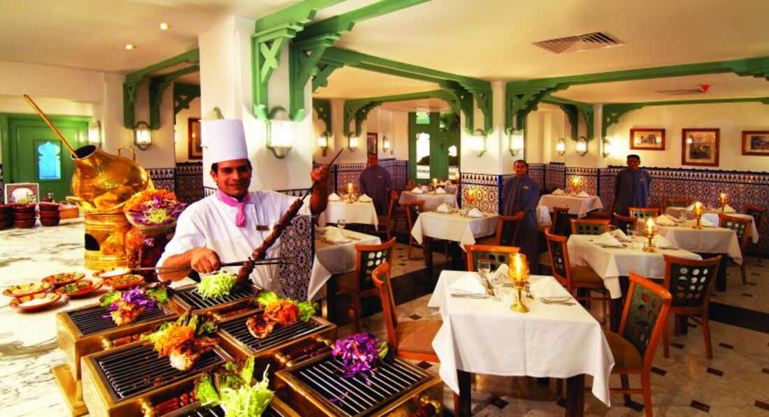 головний ресторан розрахований на 450 осіб (критий, з кондиціонером, дитяче меню, дієтичне меню, дитячі стільці); лобі-бар (10:00-24:00), La Veranda Terrace (10:00-24:00), бар біля басейну (10:00-24:00), бар на пляжі (10:00-18:30) ), диско-бар (20:00-23:00), напої безкоштовно – 22:00-23:00), кафе (19:00-24:00). 2 ресторани A la Carte - платно, за попередньою резервацією.