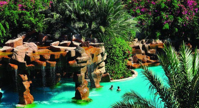 После завтрака и до обеда ритуал оттюленивания у бассейна со злоупотреблением всякими напитками. Бассейн площадью 1300 кв м. Особенно кайфово шлепаться в него по утру, пока он не прогрелся выше 25 градусов, а воздух уже жарит 35. Имеется грот, каскадный водопад и всякие цветочки листики по периметру.