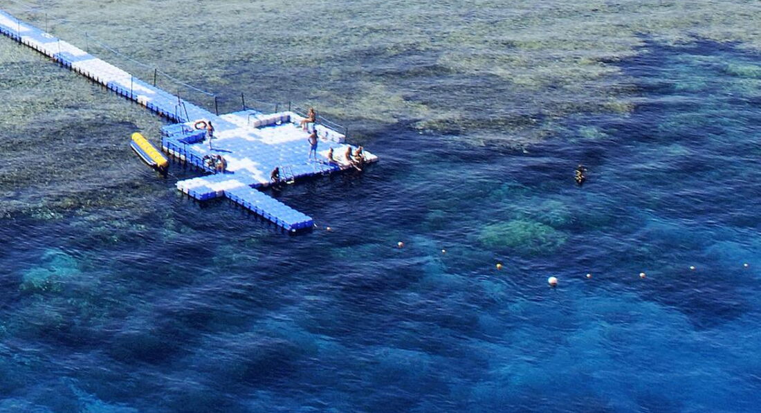 Перпендикулярно берегу, через 1км расстояние, установлены понтоны. Понтон - набор плавающих цистерн, по которым ты можешь добраться до конца коралловой гряды. Через 80-100м кораллы резко обрываются отвесной стенкой на 15м глубину. Собственно поверхность этой стенки + прилежащее пространство и есть коралловый риф. Живой мир кораллов, не описать - Вьетнам и Остров Ласточек плачет в сторонке. При первом взгляде через маску ты цепенеешь, в поле зрения несколько сотен рыб различных оттенков и всевозможных форм. Я видел барракуду!
