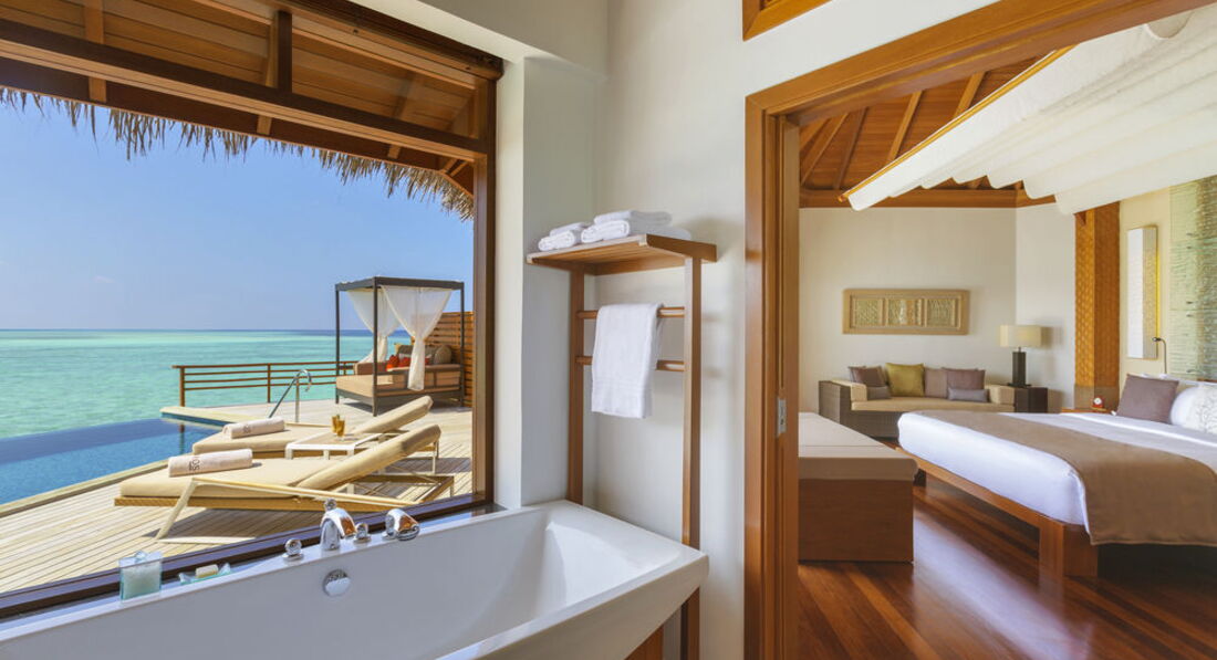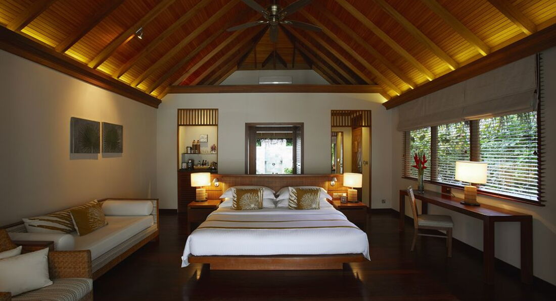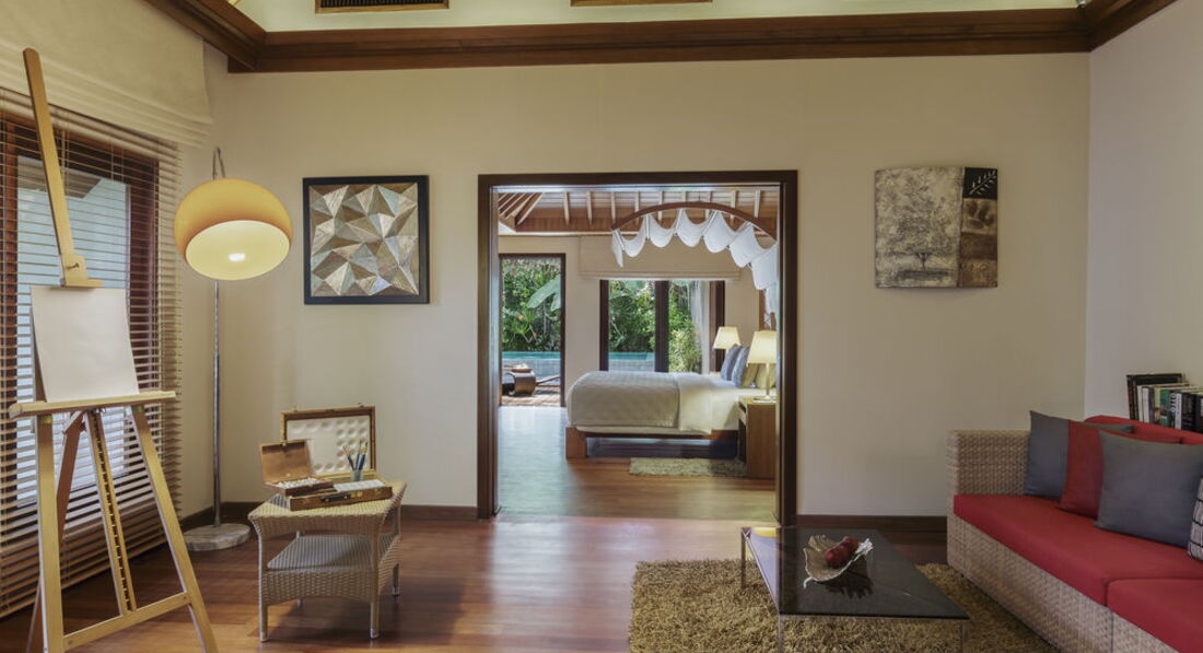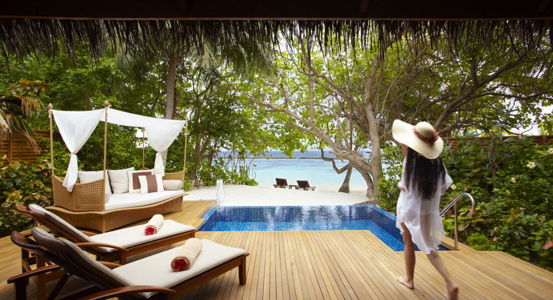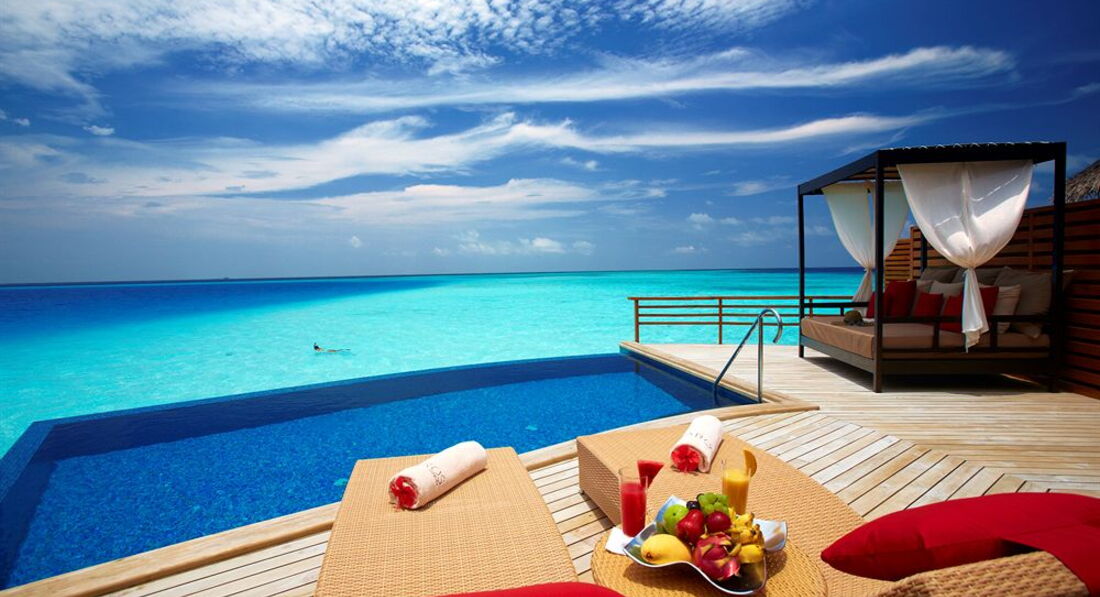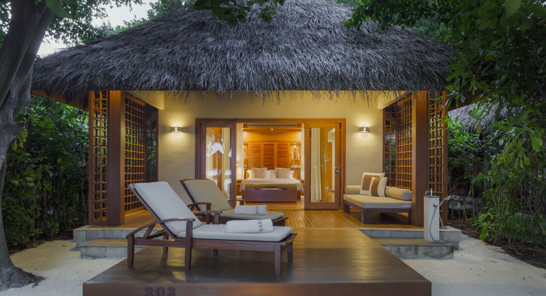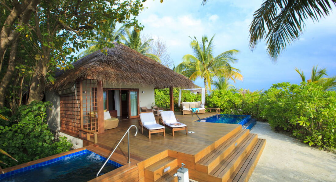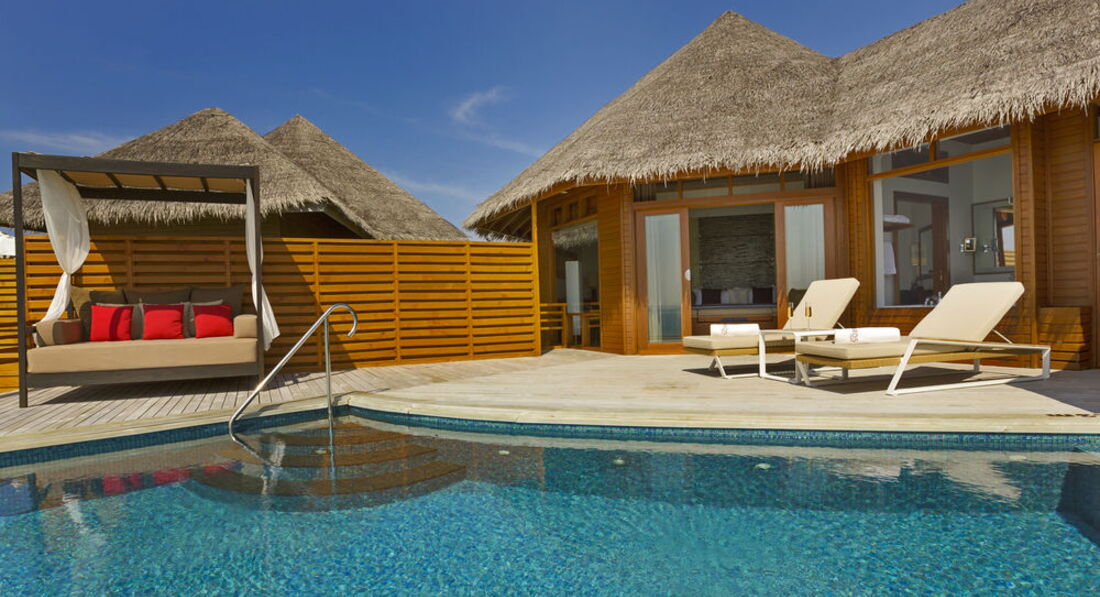 2 Baros Premium Pool Villa (160 кв.м., берегове бунгало з басейном-каскадом (3,5 х 2,5м) і джакузі. Панорамний вид на океан, ліжко king size, відокремлений пляж, медіа бібліотека, велика дерев'яна веранда з лежаками, послуги дворецького.),