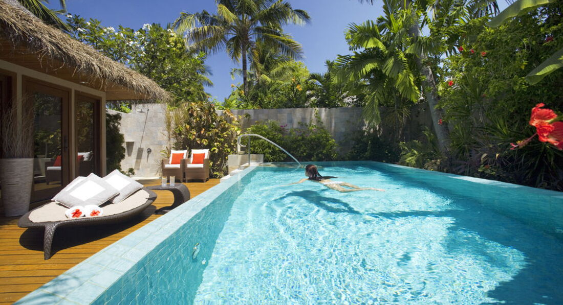 8 Baros Pool Villa (134 кв.м., що окремо стоїть бунгало з басейном (10 кв. м.), розташоване на березі в тропічному саду з зоною для відпочинку.),