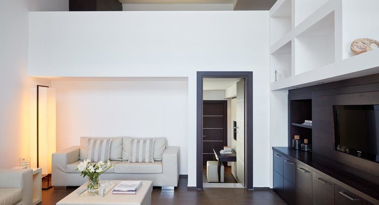suite (двоповерховий номер, нижній поверх: вітальня, кабінет, ванна кімната, тераса, верхній поверх: спальня, ванна кімната, осн. ліжко - двоспальне, дод. - 2 односпальні, макс. 4 чол., 100 м2).