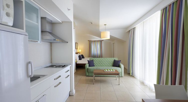 Всі номери обладнані міні-кухнею. Це буде зручно для сімей з маленькими дітьми. Затишна зелена територія, гарний піщаний пляж та якість мережі готелів Barut гарантують гарний відпочинок.