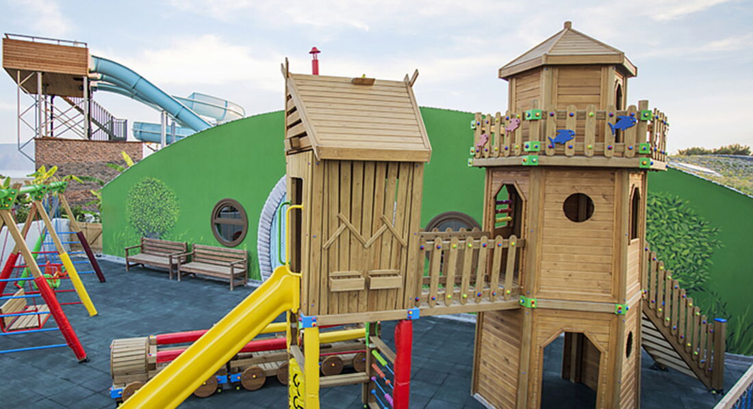 Отель наверное больше настроен на английских туристов, именно они в отеле основной контингент, аниматоры из Англии , может потом появятся и рускоязычные,для деток есть все и горки и детский бассейн и детский клуб.Кстати в ресторане есть отдельно зал для взрослых и залы для семьи с детьми.