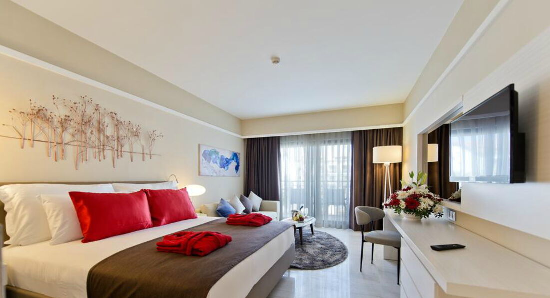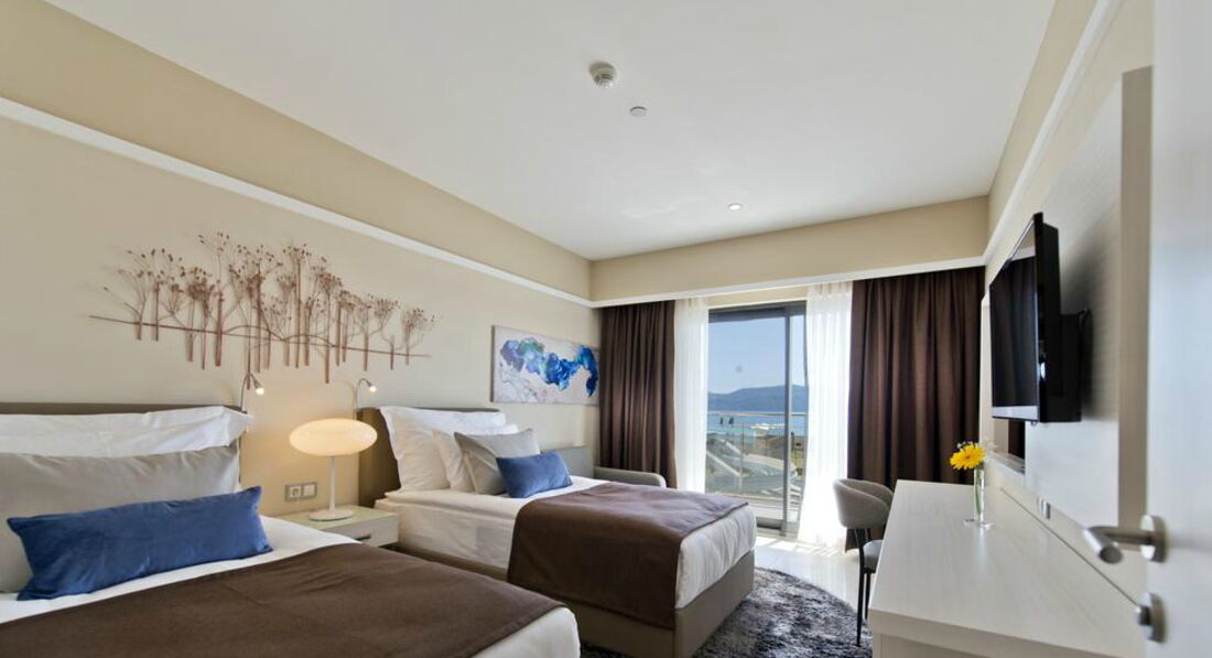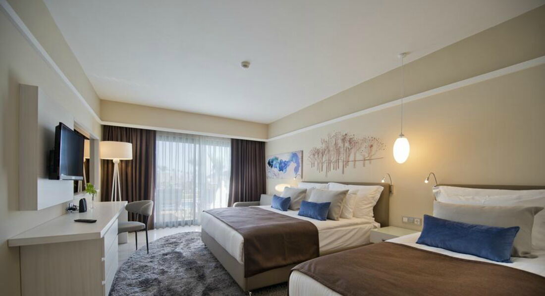 20 двокімнатних superior family sea view (з них 10 з видом на море, 10 з боковим видом на море, 2 спальні з дверима, ванна кімната з ванною та душем, макс. 5 чол., 61 м2);