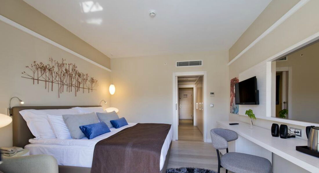 Очень порадовали номера, красивый и стильный интерьер, хорошая мебель, отличная ванная комната, халаты ,тапочки, минибар, чайный набор, белоснежное белье .Большое спасибо хочется сказать персоналу отеля, все стараются, в ресторане и в баре очень приветливый персонал.Ресторан это отдельная тема , питание очень качественное , выбор огромный и очень разнообразный,постоянно играла красивая и ненавязчивая музыка, на столах свежие цветы . Мелочь вроде бы? Но именно из таких продуманных мелочей и складывается отличный отдых.