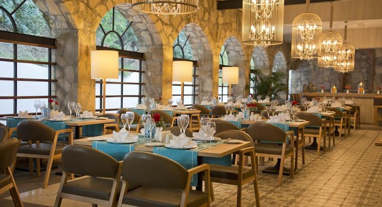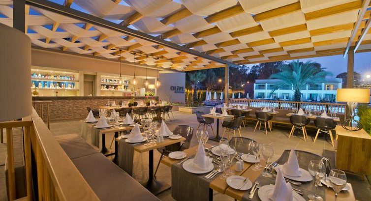 Бари та ресторани: головний ресторан розрахований на 750 осіб (критий, з кондиціонером, літня тераса, дитяче меню, дієтичне меню, дитячі стільці), лобі-бар (24 години), бар біля басейну (10:00-24:00), бар на пляжі (10:00-24:00), диско-бар (22:30-02:00), снек-бар (14:30-16:00) та ін. 3 ресторани A la Carte: турецький, рибний , середземноморський – безкоштовно 1 раз за час проживання, за попередньою резервацією.