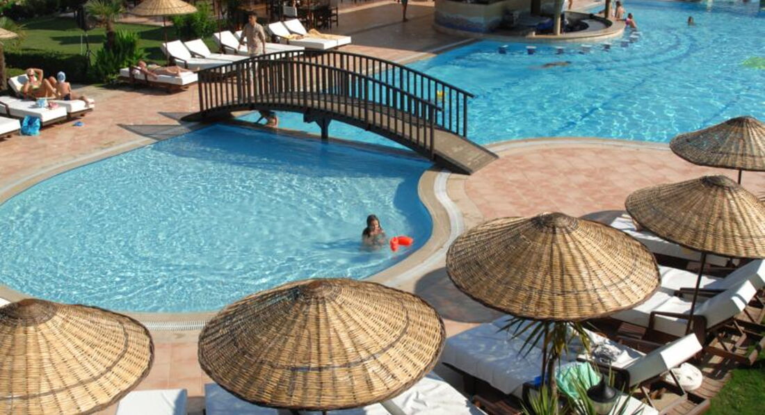 Отдыхали с 10 по 21 августа 2013г. С подругой и двумя детьми 5 лет и 10 лет. Начну все по порядку вылет из Астрахани в Анталию был по графику в полете всего 2ч.20м. самолет был новый, персонал доброжелательный и посадка удалась на славу. При выходе из аэропорта с табличкой встретил представитель туроператора направив нас на нужную стойку, затем мы устроились в комфортабельном автобусе и в дороге были всего 40 мин. При входе в отель нас встретил представитель Ферди забрав наши документы нас оформили даже минут 5 не прошло. Номер был на 3 этаже комфортный, просторный, чистый, уютный и что самое не маловажное с видом на море с двух сторон. Хочу подчеркнуть без дополнительных доплат! Персонал отзывчивый, уборка и смена полотенец была каждый день, а постель меняли через 3 дня. Питание было отличным ели, пили круглосуточно. Территория большая, чистая, ухоженная! Отель состоит из 2 блоков А и В. Мы жили в А блоке он больше подходит с детьми, блок В более молодежный. На территории 3 бассейна, 5 горок, что не мало важно для деток. Море какое там чистое, прозрачное, голубое, красивое и теплое не могу передать. Нужно это ощутить! Хотя я была не первый раз в Турции, но такого побережья я еще не видела. Видно было под ногами как рыбки плавают, видели осьминога, даже доставали на сушу морскую звезду. Детей из море просто было не вытащить как впрочем и нас. Вечерние программы проходили с аншлагом! Посетили кожаный центр в Анталии все отлично, но дороже чем конечно в Стамбуле. Так же посетили ювелирный центр в Анталии боже какая роскошь там!!! Ну и конечно без покупки не ушли торговались до последнего и победили. Так же взяли обзорную экскурсию по Анталии с прогулкой на яхте с остановкой на острове Черепашьем и купались в открытом море. Получили массу впечатлений и удовольствия.