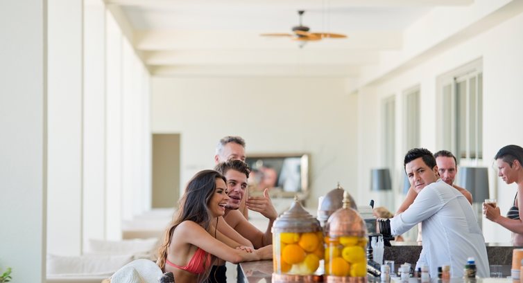 На пляже бара нет. Приходит служитель несколько раз в день и приносит напитки, иногда может принести фрукты или булочку. Примерно раз в 2 часа разносят. Только неизвестно, что принесут в следующий раз - может фреш, а может какой-нибудь спрайт.