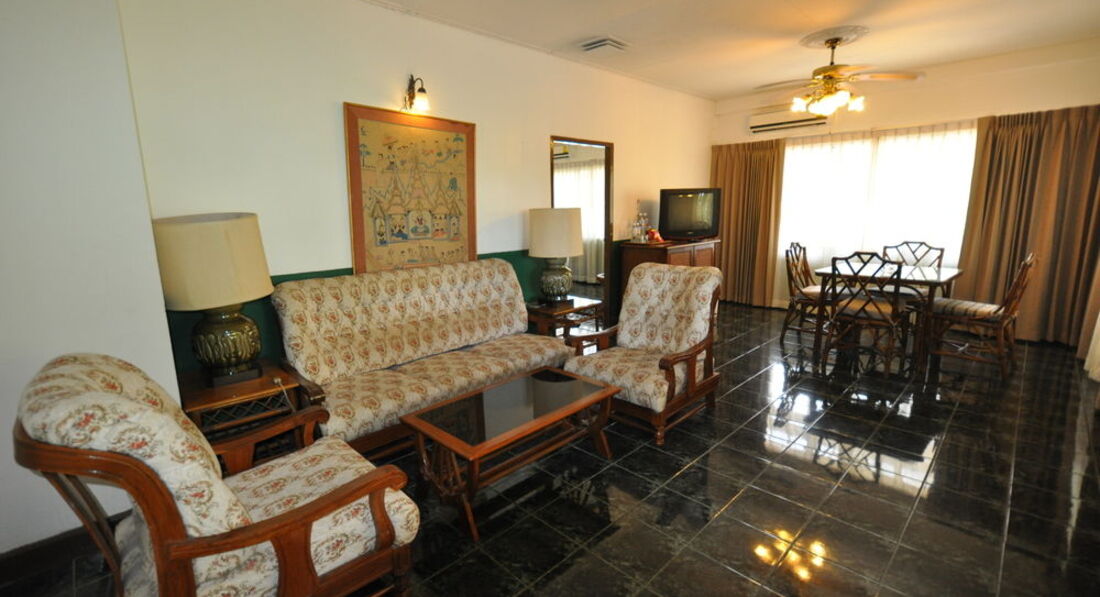 По приезду в отель на ресепшне встретили милые таечки и негр ))))) Сходу попросили 100 баксов депозит. Но не помню что бы я где то видел инфу о депозите. С собой брал только рубли и тайки предложили мне купить доллары у них по мизирному курсу. Благо в отеле меня встречали друзья и подкинули мне сотню долларов. Разместили моментально. Первое что бросилось в глаза-это территория отеля. Территория для центра Паттайи просто улётная. все зелено и уютненько, большой классный бассейн. Номер у меня был на втором этаже №209 с видом на бассейн - супер )))) Номер конечно оставляет желать лучшего, старая мебель, всё старое и дряхлое, но я не привередливый. Этот минус компенсировал вид из окна...т.к. на первом этаже прям подомной жила знакомая и у неё окно выходило на противоположную сторону на какой то забор ))))))) За 18 дней своего отпуска в бассейне я искупался один раз- в последнюю ночь перед отлётом - супер)))) Да, купаться можно круглосуточно - главное не борзеть! У меня там была очень большая компания не смотря на то, что летал я один и мы очень часто по ночам устраивали посиделки возле бассейна - не возбраняется...главное не наглеть! Молодёжи в отеле нет...русских почти нет...в основном европейцы. Расположение отличное, 2 выхода из отеля и один из них прямо на пляжную улицу...До фестиваля рукой подать....В общем расположение классное. Завтракал так же всего один раз в конце отпуска, но по достоинству оценил...Изобилие всего и всё очень вкусно. Сейф на ресепшене, без проблем...только не работает с 10 вечера и до 7 утра по моему. Из сейфа и из номера ничего не пропало...убирались нормально...Русским вход свободный, за гостей "тайцев" платим охраннику 10 бат, да именно 10 бат )))))) В номер можно приносить еду, на бассейне пей, ешь, пой, танцуй - всем до лампочки. В отеле есть свой магазинчик, что очень удобно...Рядом на бичке оч выгодный обменник если идти в сторону фестиваля. При выезде насчитали 900 бат непонятно за что....но деньги были-заплатил без возмущений))) Короче в следующем феврале еду однозначно в этот же отель))))))) ЦЕНА-КАЧЕСТВО ПОЛНОСТЬЮ ОПРАВДАНЫ.