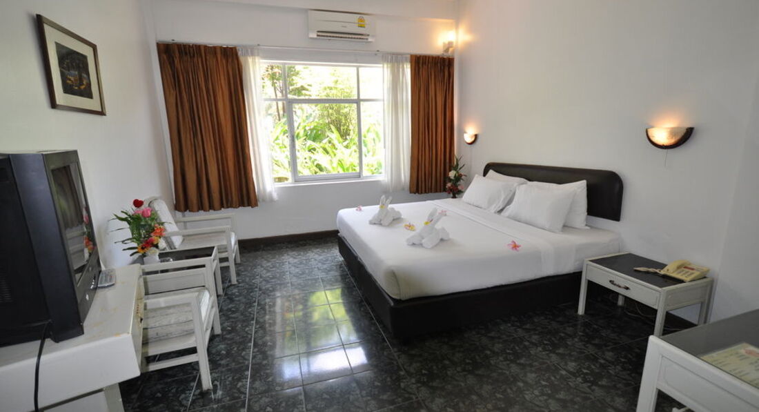 Отель ооочень старый. мебель убитая. в ванной душ вмонтрован в стену.Бельё и полотенца серого цвета( иногда было белого,но очень редко).Фена в номере нет.Сейфа тоже.Есть минибар за плату.Две маленькие бутылки воды в день -бесплатно.Слышимость в номере очень хорошая,каждый день мы просыпались не под пение тропических птиц,а под стоны престарелого иностранца и развлекавшей его тайки.Уборка-нормальная.Балконов нет.Только в номерах супериор,расположенных на первом этаже есть терраса.