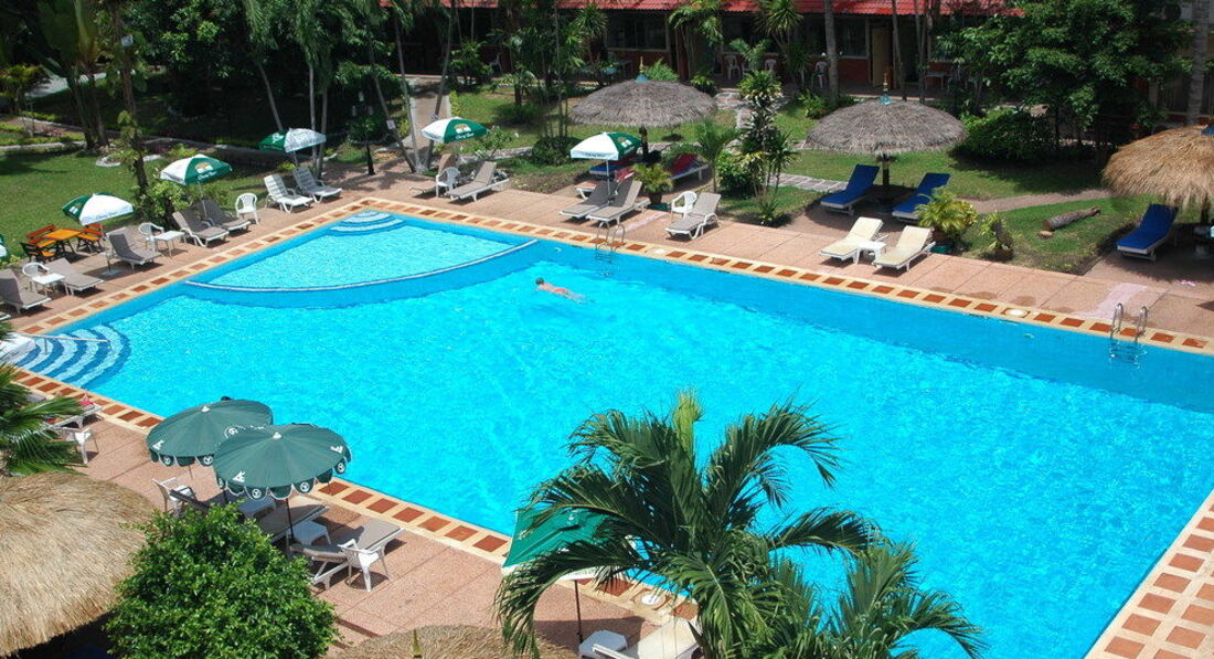 Отель с зеленой красивой территорией, хороший глубокий и чистый бассейн, есть джакузи, ринг для бокса, массажный салон, конференс зал, магазин возле ресепшина, и бильярдный стол, стоимость игры 20 батт.