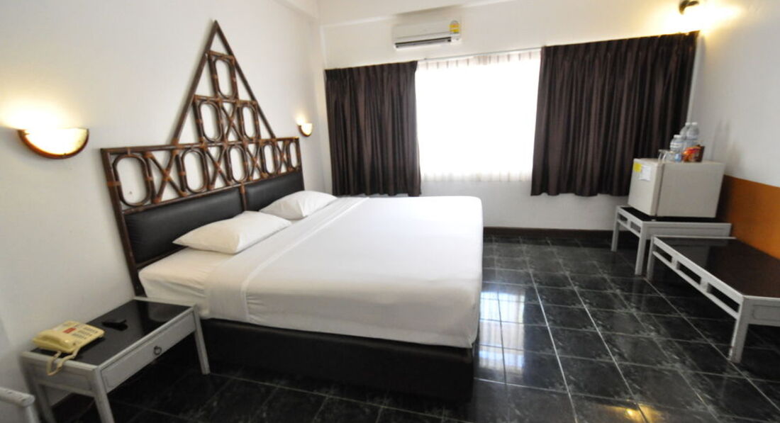 Летели с библиками, второй год только с ними и только в Тай))) Путевка из Новосибирска обошлась в 53 500 Встретили в Бангкоке, по дороге вручили рюкзаки, бусы и кучу информации о Тае и экскурсиях. В отель заселили сразу без депозита, номер не порадовал, но для ночевок вполне сносный. Старая мебель, крашеные водоэмульсионкой стены и потолок из фанеры , староватый санузел. НО!!!! Огромная кровать, наверное на пятерых, чистое белье и полотенца, вид на бассейн. Хорошая территория отеля, глубокий бассейн 3 м, полотенца в любое время в лобби или с 9 до 6 у бассейна. Вежливый персонал, круглосуточная охрана. Сейф на ресепшн, забирали деньги в любое время, лишь один раз в 23 00 не оказалось "хранителя", а нам нужны были паспорта на утреннюю экскурсию, но без проблем отдали в 5-30. Удобное расположение отеля в пяти минутах ходьбы от Фестиваля. В отеле русских почти нет, китайцы, индусы, немцы, америкосы. Отличные завтраки, были третий раз в Тае, лучше нигде не кормили. Экскурсии взяли у оператора, немного дороже, чем на улице. Сезон дождей ощутили только один раз, когда на пароме на Ко Лан попали под шторм с ливнем, было страшновато и в тоже время весело. Вымокли до нитки, искупались в горячем бушующем море и отправились в отель. Рекомендую отель для молодежи!