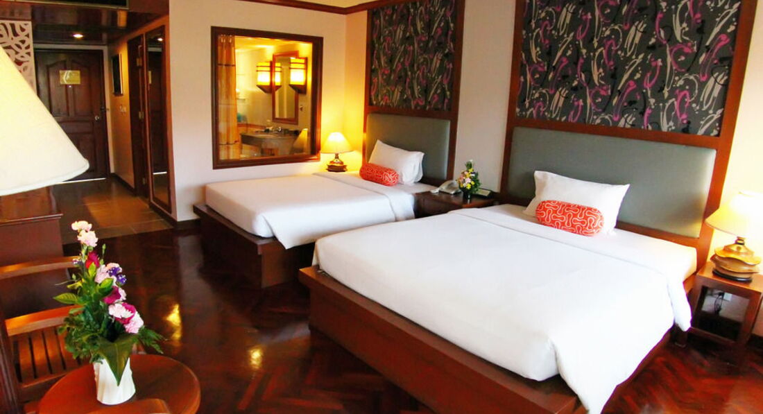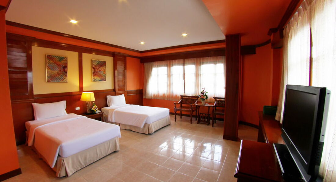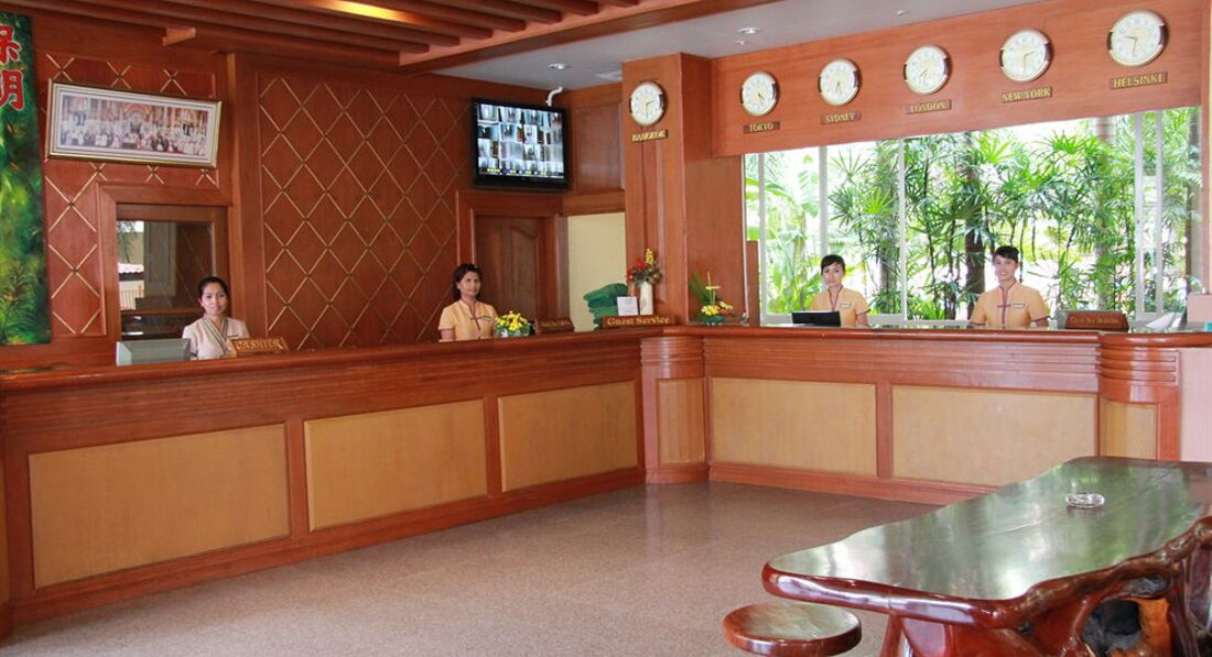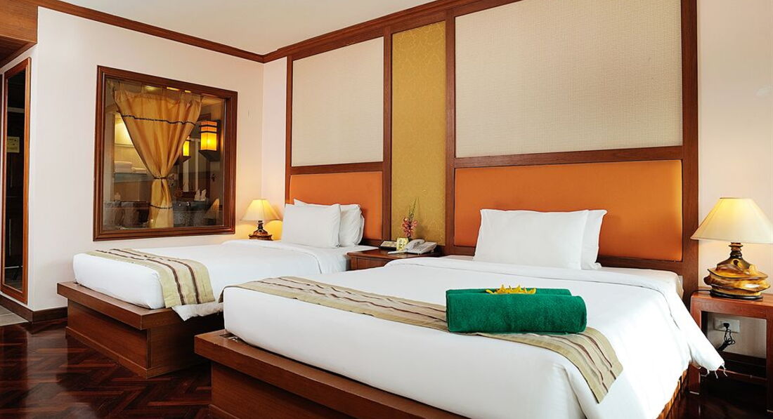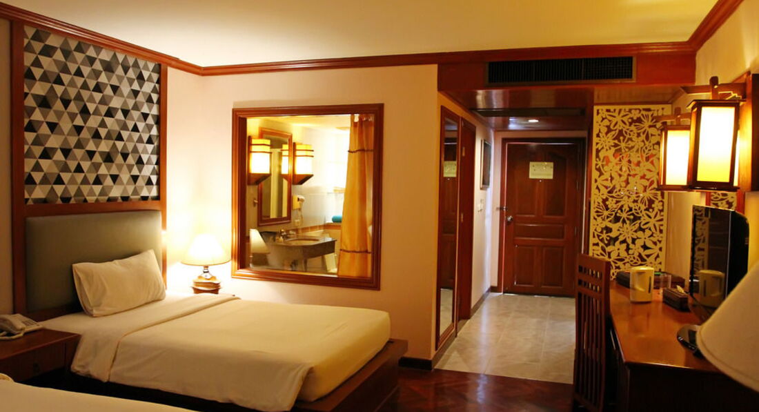 Здравствуйте, отдыхали с мужем недавно в этом отеле. Отель очень красивый, нормальная территория внутри (бассейн, массажные столы, свой ресторан). По путевке нам достался стандартный номер, о чем мы потом пожалели. В номере было ужасно не уютно, старая мебель, темно, старый кондер, который работал только на одном режиме и дребезжал. В номере плохое обслуживание, не хватало полотенец постоянно, не всегда убирались и приносили воду, мыло и.т.д. приходилось постоянно звонить гиду, в ванной комнате элементарно не было крючков для полотенец. Сейфа не было. В один прекрасный день у меня пропал обычный платок на голову, я очень долго думала зачем тайкам он сдался. Хотели сменить номер, но нам сказали, что на данный момент все заняты, освободятся через 3 дня, есть с доплатой 800 бат сутки. А в последний день у нас решили вообще не убираться и полотенец не давать. По питанию, завтраки были нормальные всегда есть, что выбрать. Расположение отеля нам понравилось.