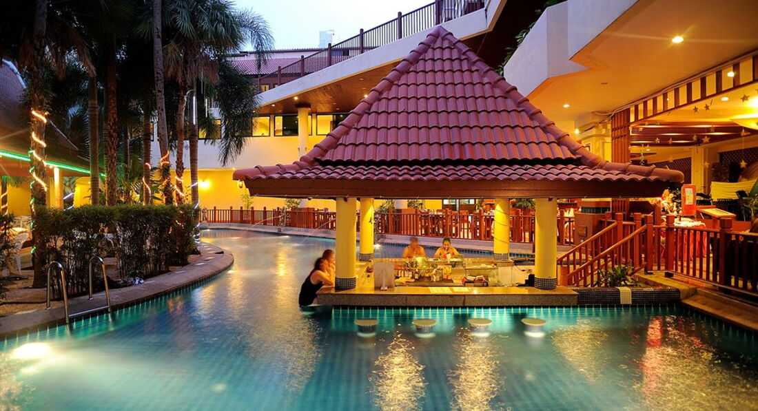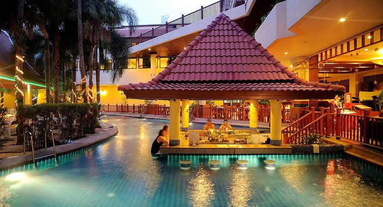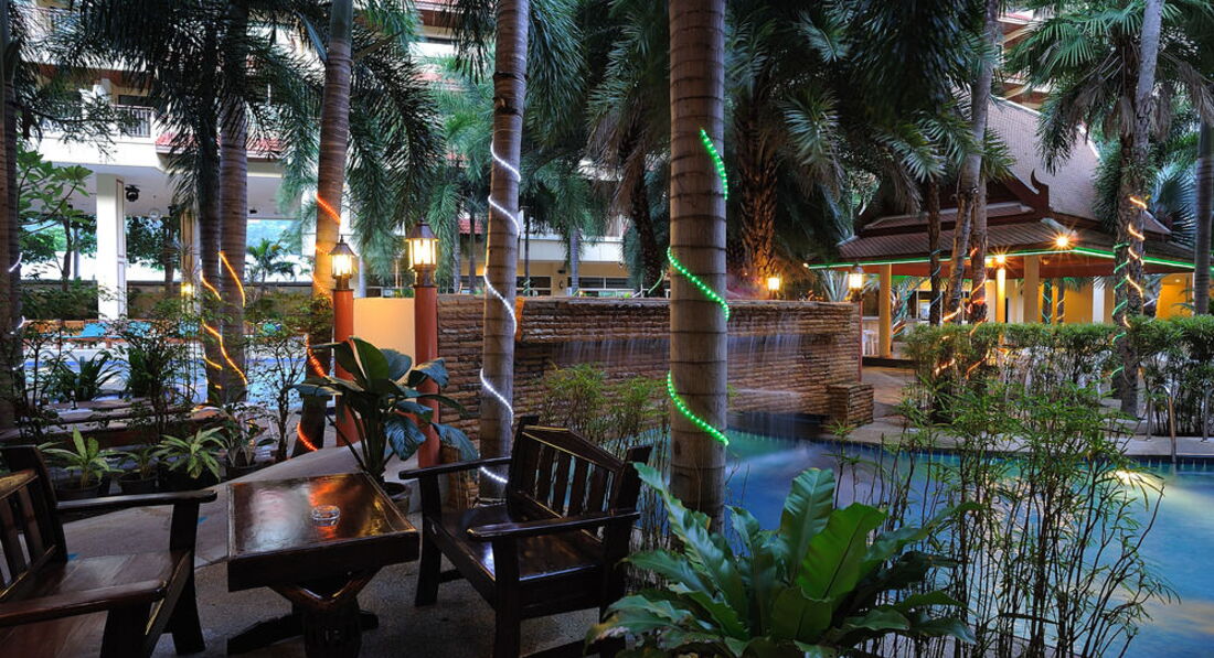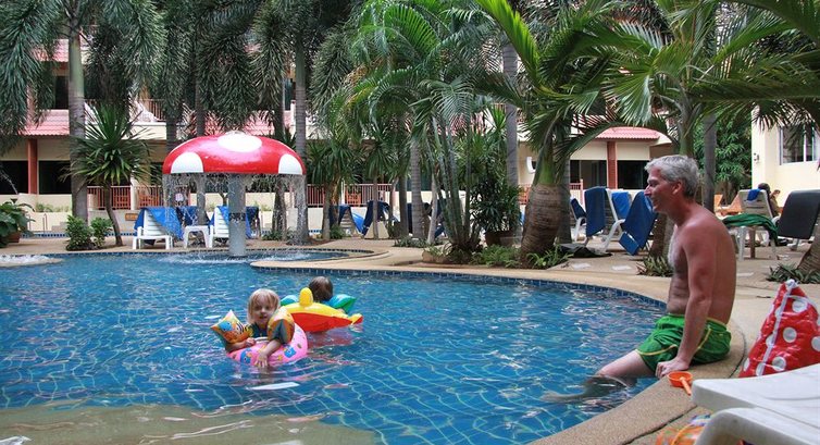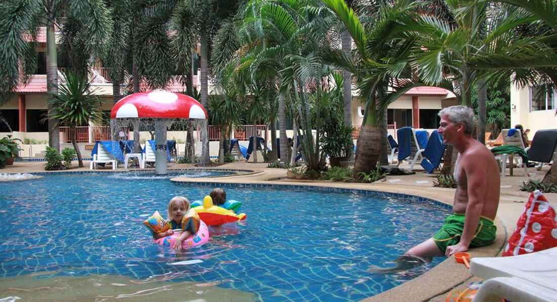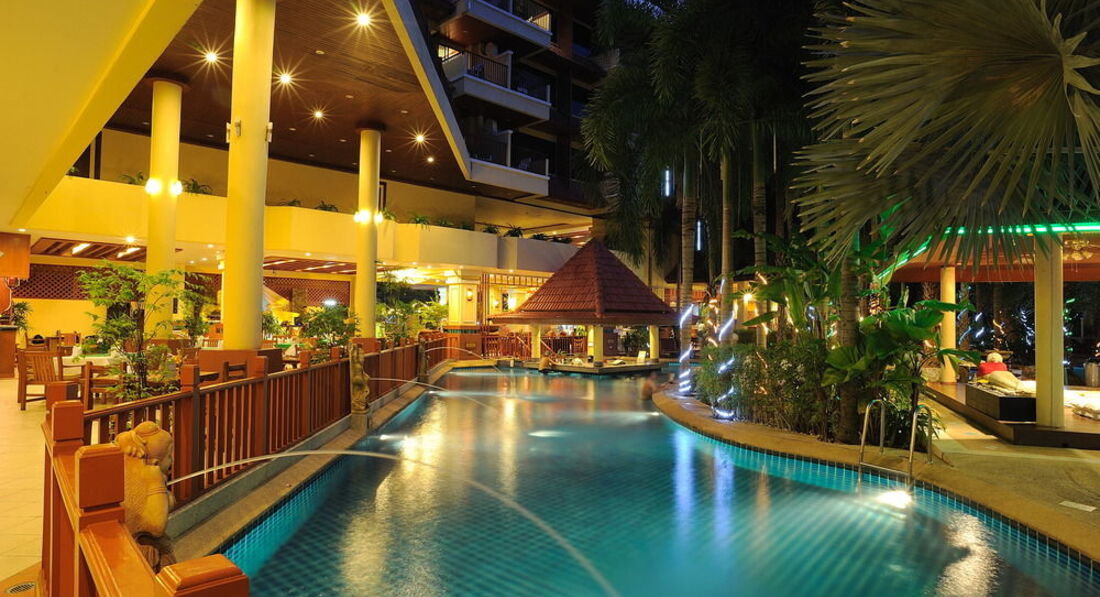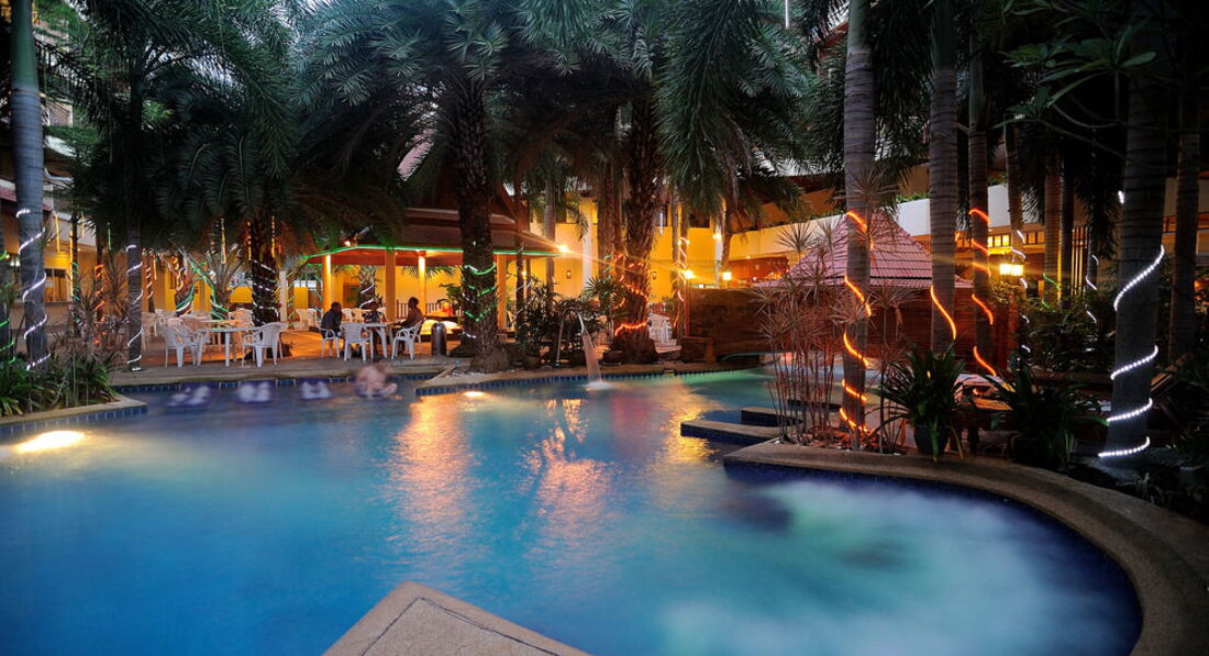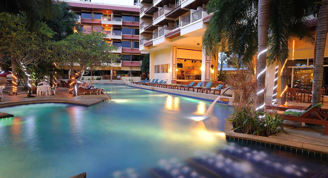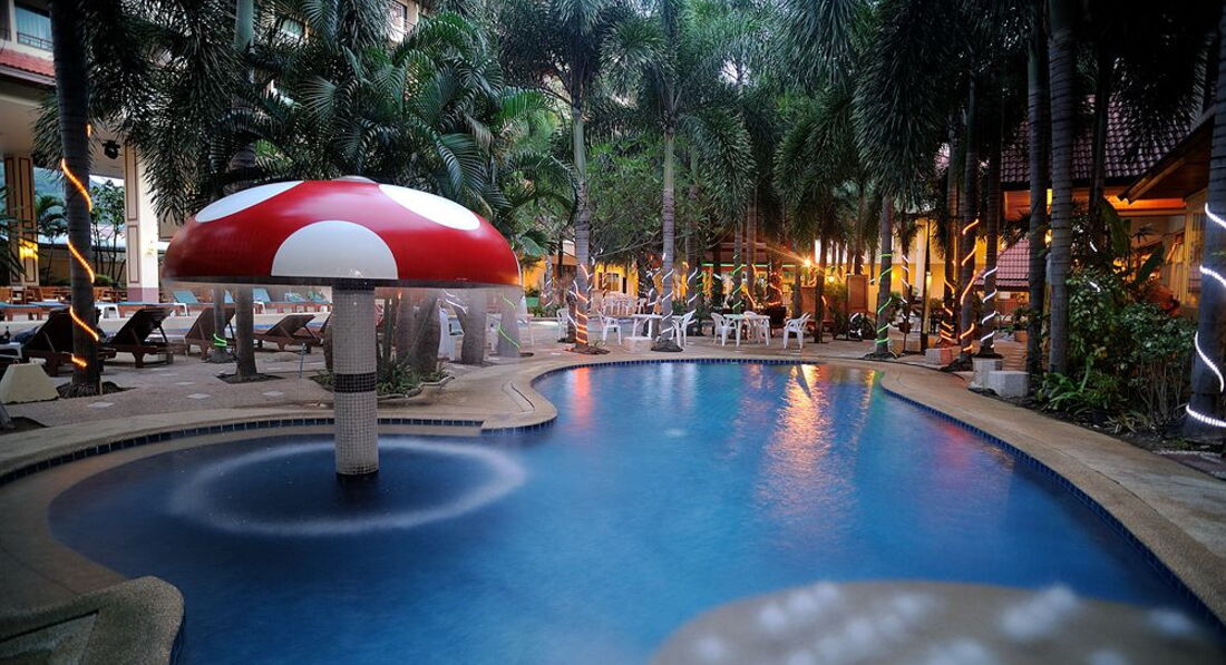 Есть два бассейна, детский и взрослый. Территория маленькая, но есть где посидеть вечерами, если не хочется никуда идти. Отель расположен недалеко от Бангла роуд (минут 10-15) где расположены клубы, ходили пешком. Молодежи понравится, но с детьми не советую, все-таки шумно, рядом Хард рок кафе, громко музыка играет.